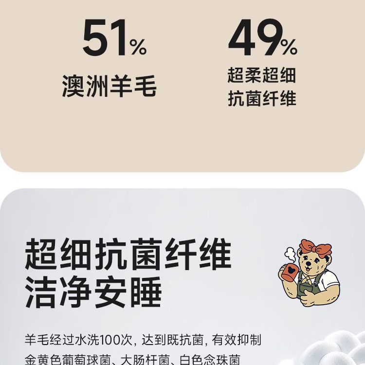 白【羊毛被,抑菌防螨】
