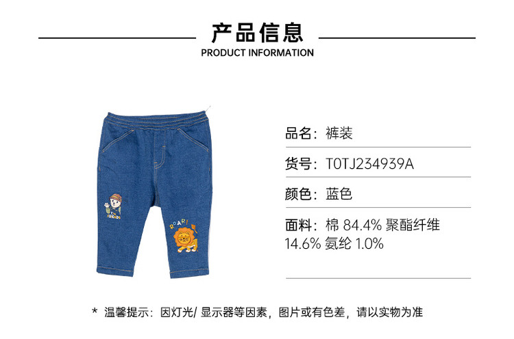 商品名称:【牛仔裤】小熊童装春季男宝宝休闲牛仔针织长裤 392001