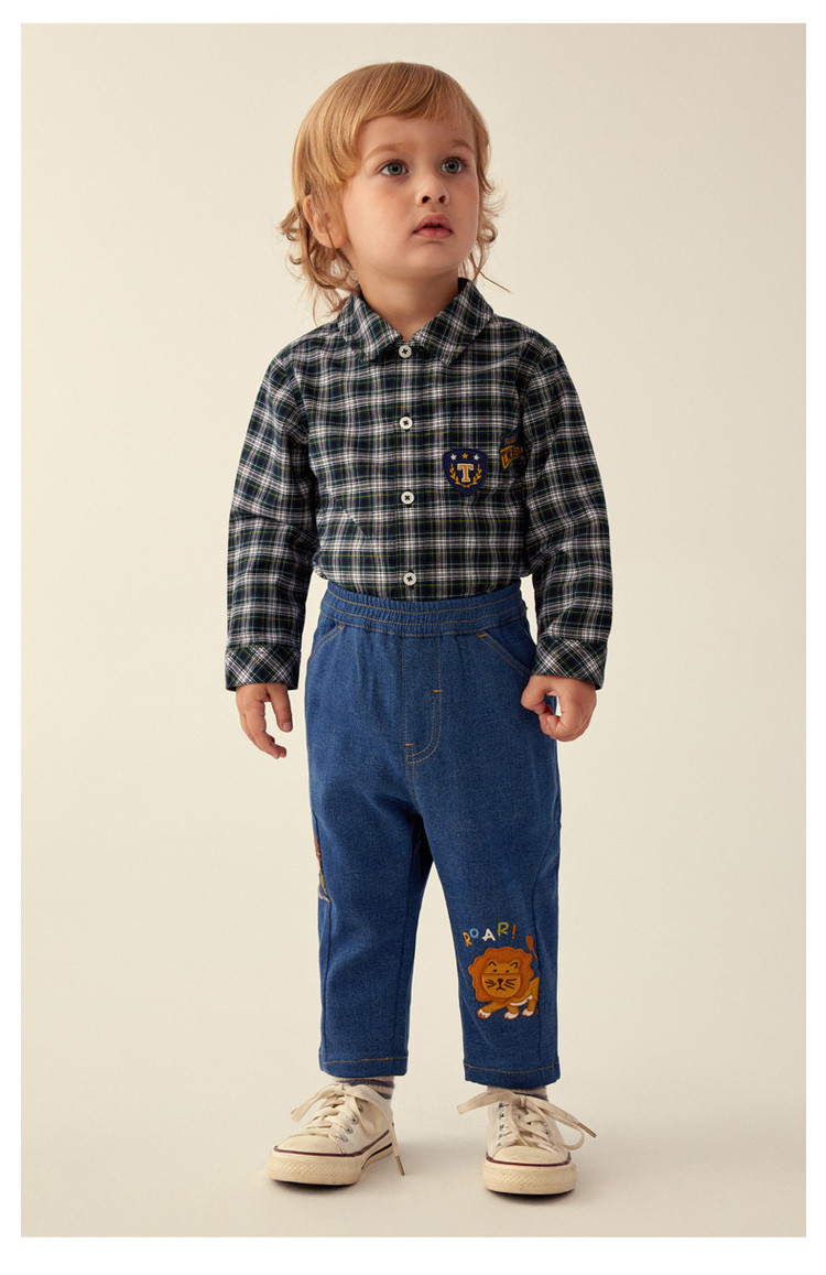 【牛仔裤】小熊童装春季男宝宝休闲牛仔针织长裤 392001