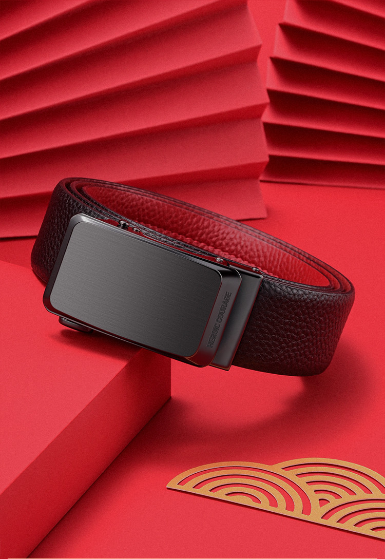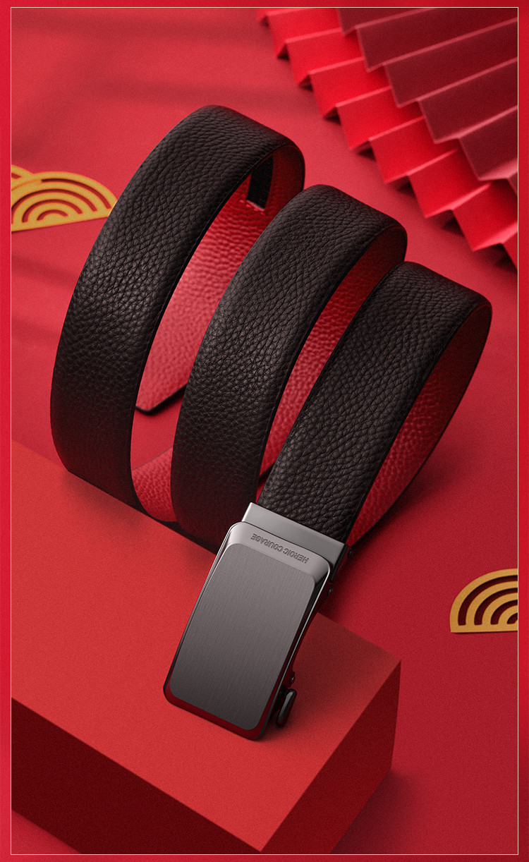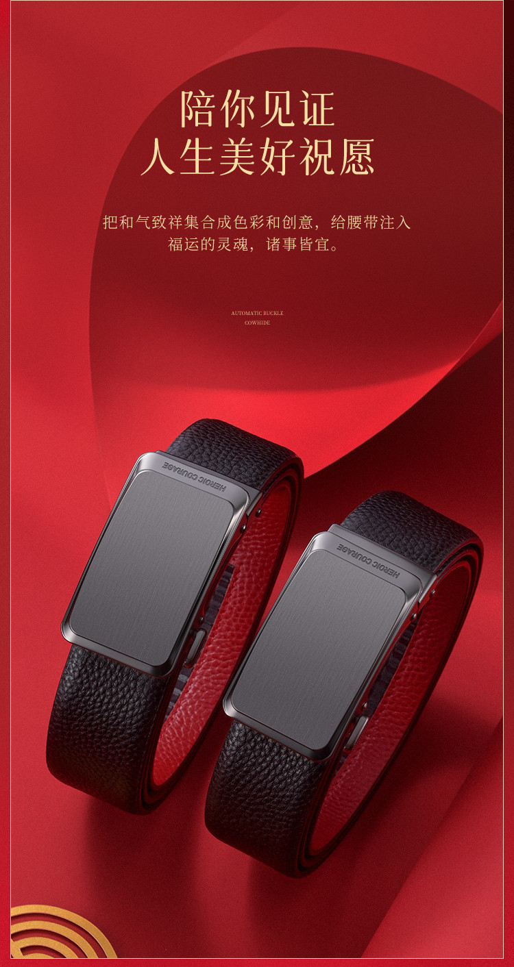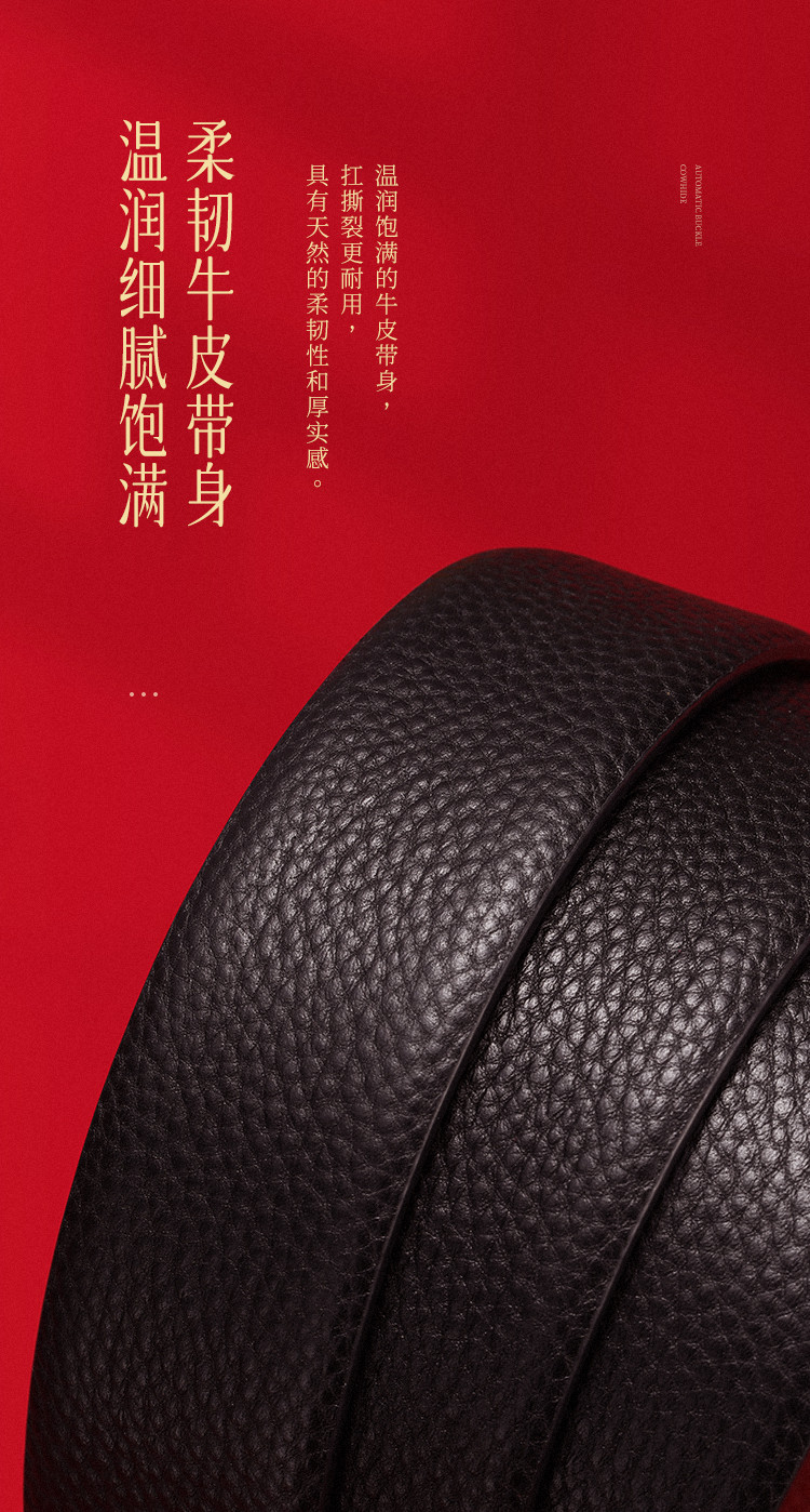 【头层牛皮】皮带男士腰带本命年红色自动扣礼物品牌送男友老公 890966