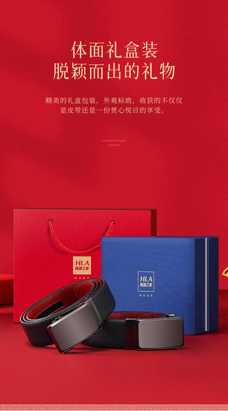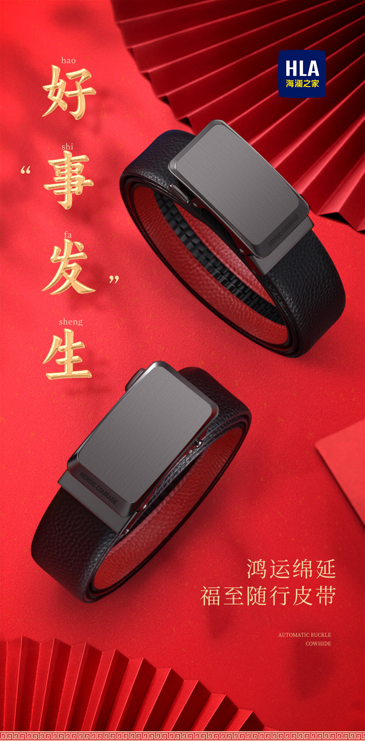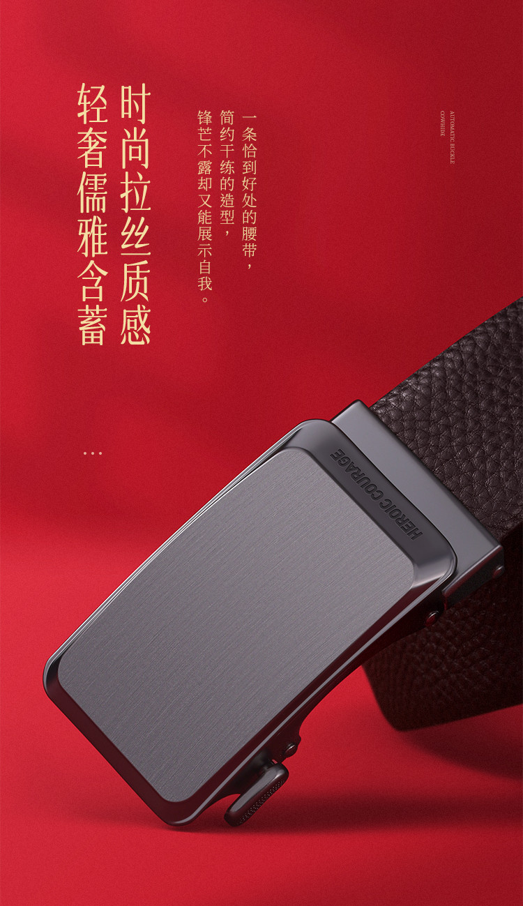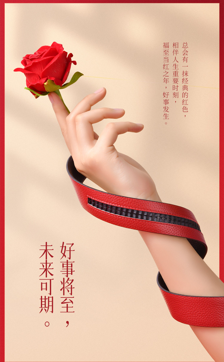 【头层牛皮】皮带男士腰带本命年红色自动扣礼物品牌送男友老公 890966