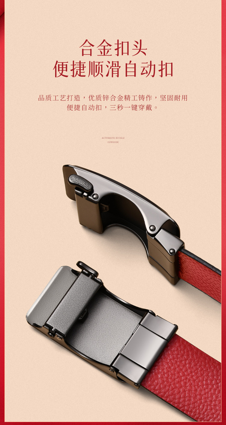 商品名称:【头层牛皮】皮带男士腰带本命年红色自动扣礼物品牌送男友老公 890966