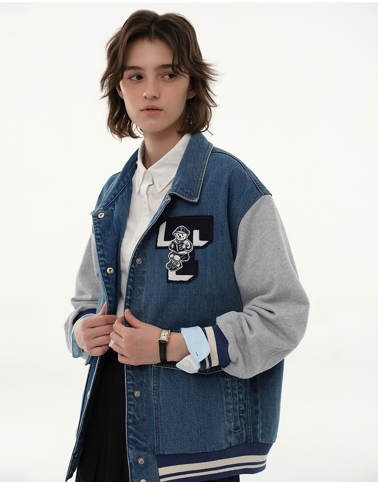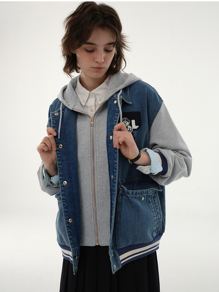 小熊春款宽松拼接牛仔短款外套时尚美式复古小个子 293441