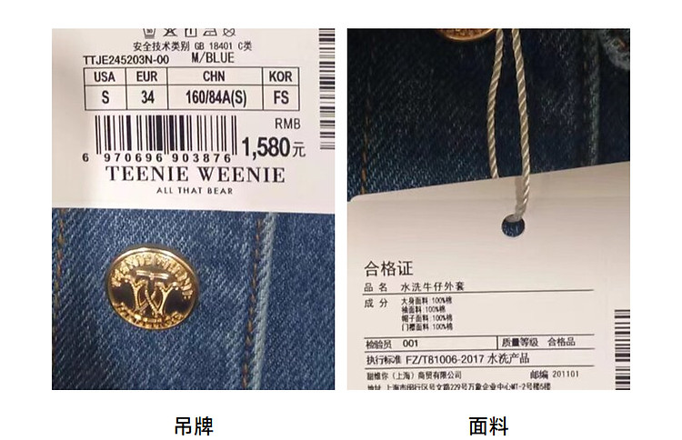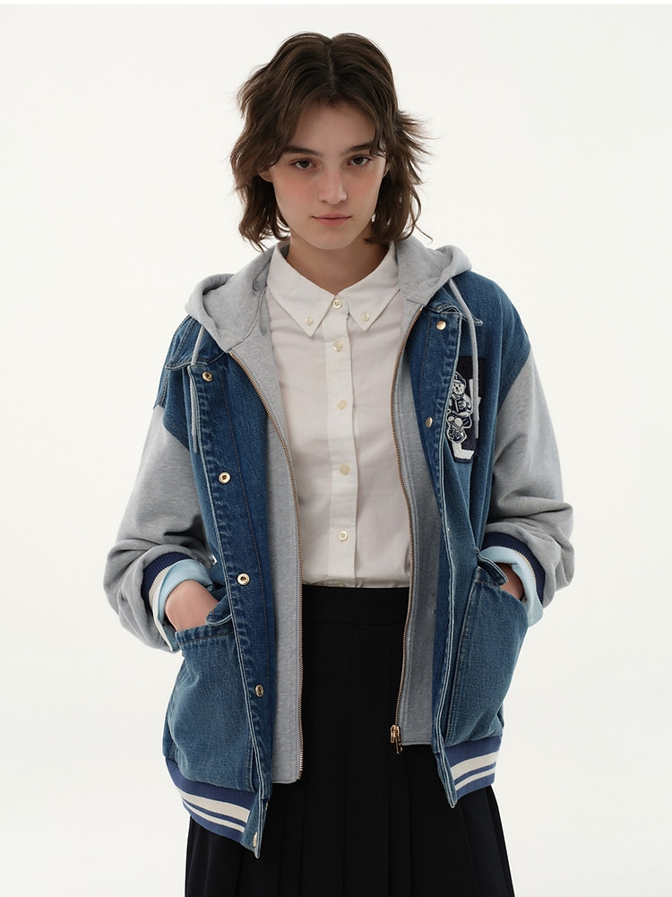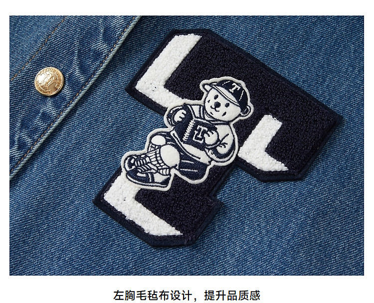 商品名称:小熊春款宽松拼接牛仔短款外套时尚美式复古小个子 293441