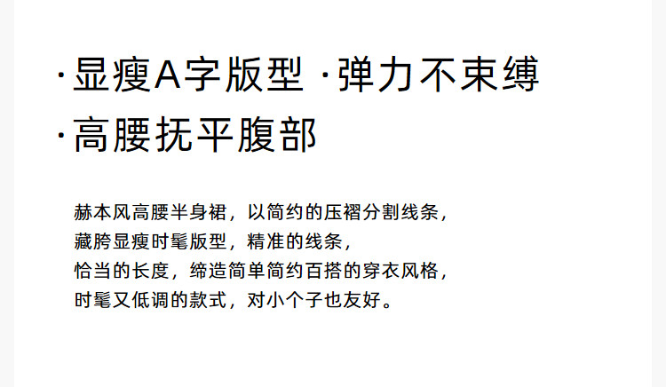 商品名称:【春季款】赫本风复古通勤垂感显瘦高腰A字半身裙小黑裙 265435