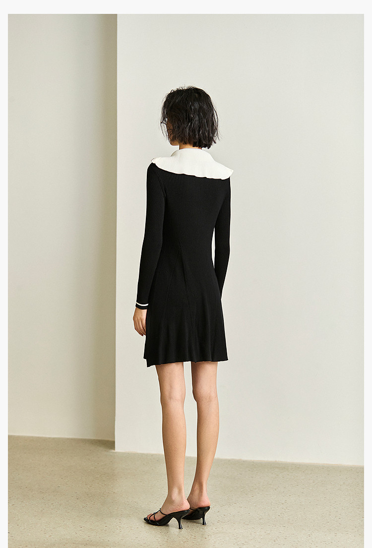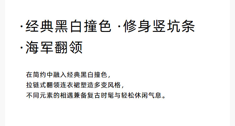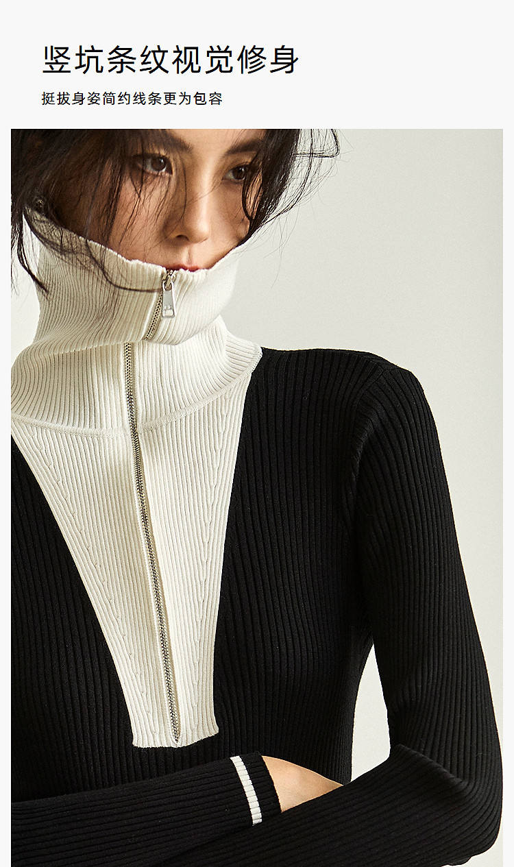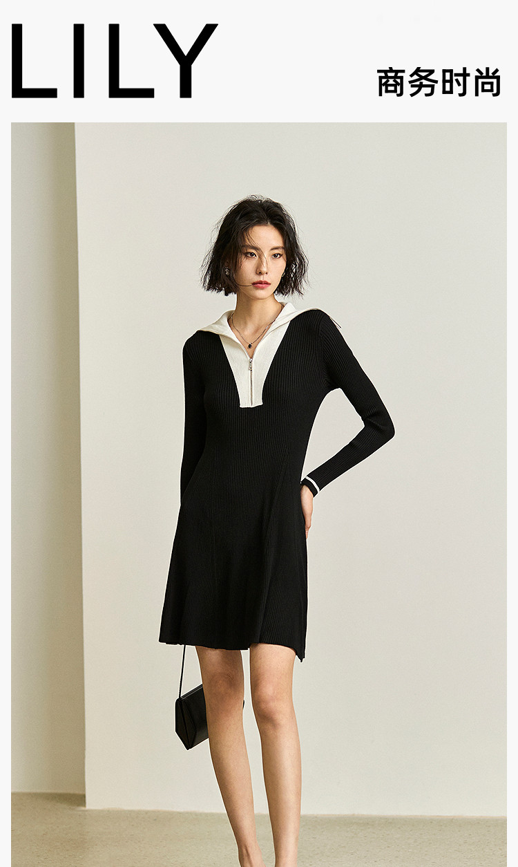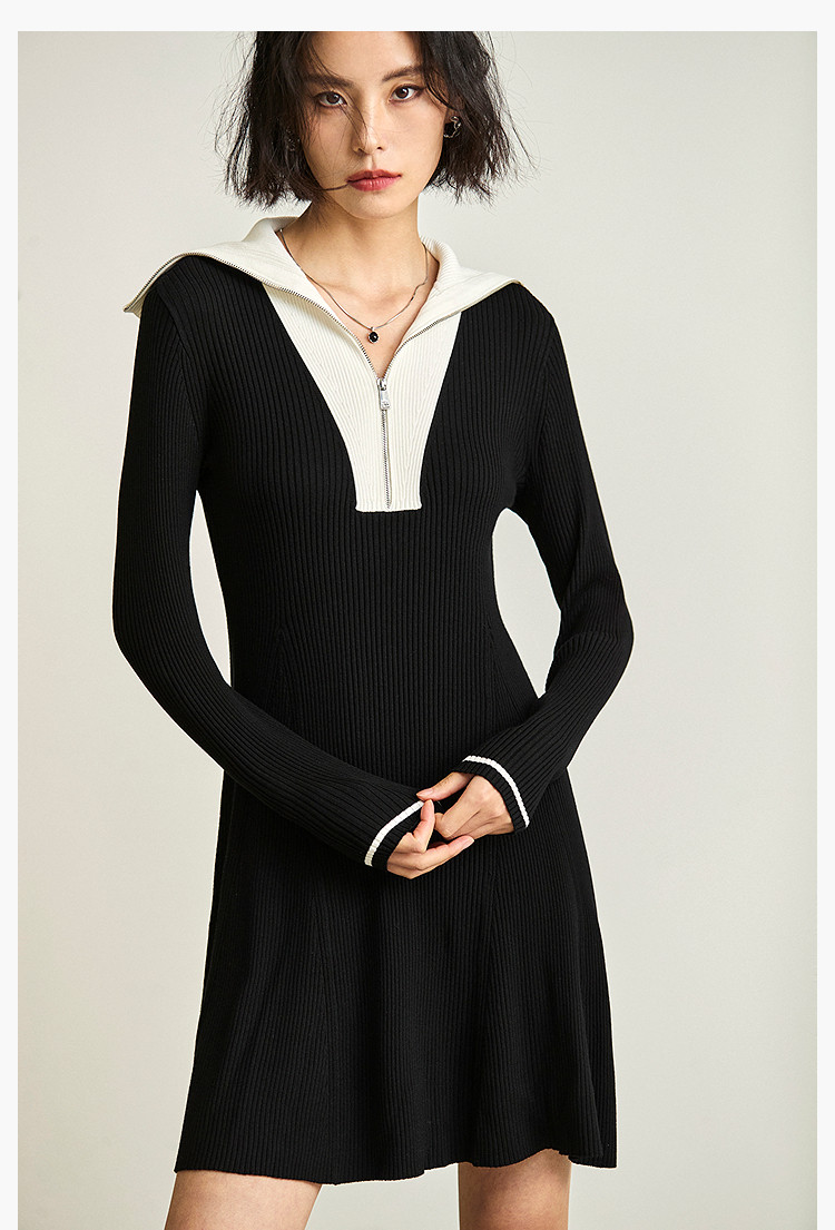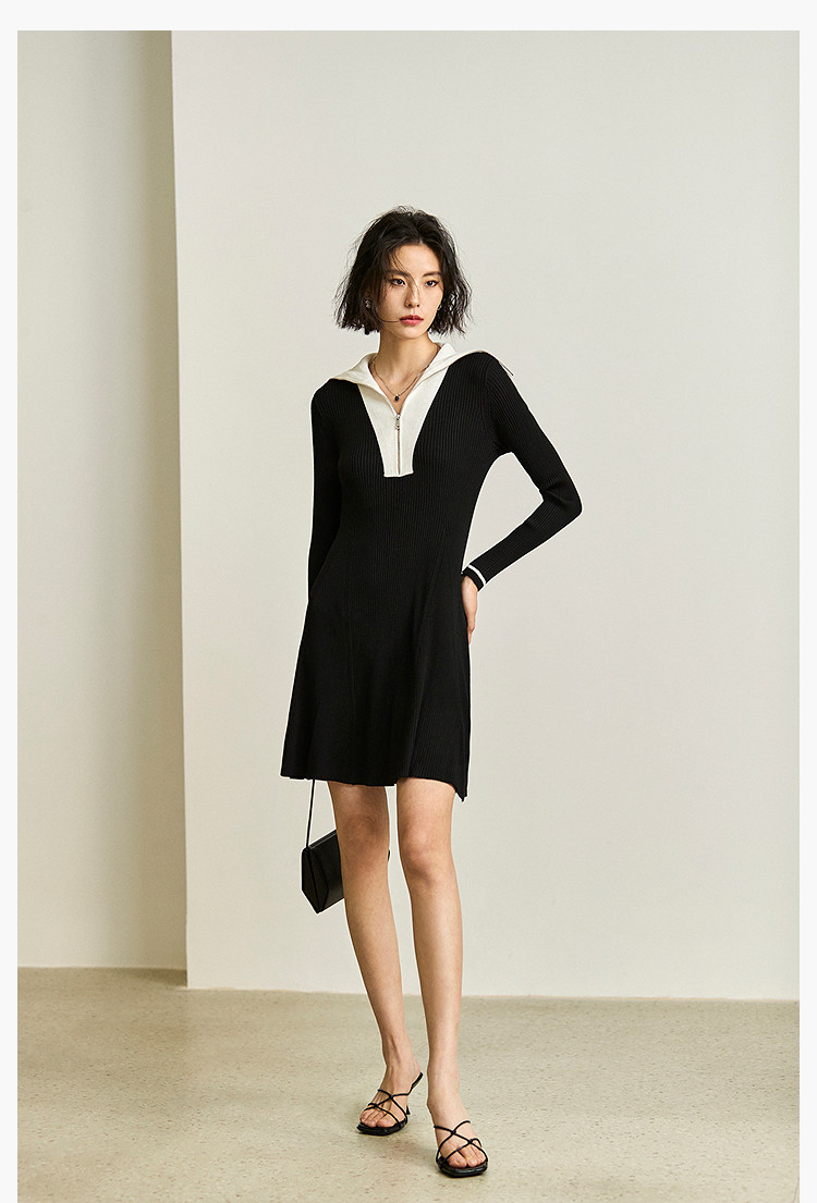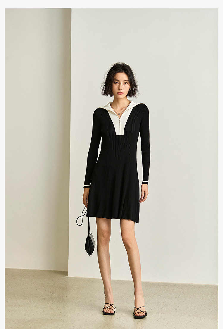商品名称:通勤设计感撞色复古拉链翻领针织黑色连衣裙 538587