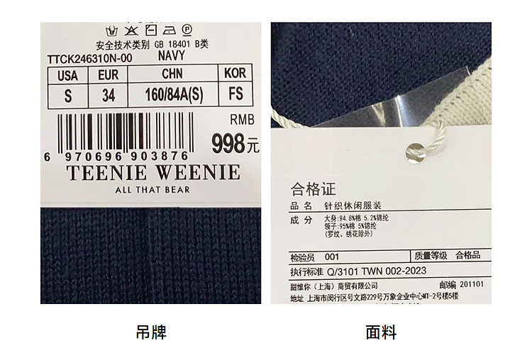 商品名称:小熊小香风西装开衫针织衫毛衣外套轻职场风女 234881