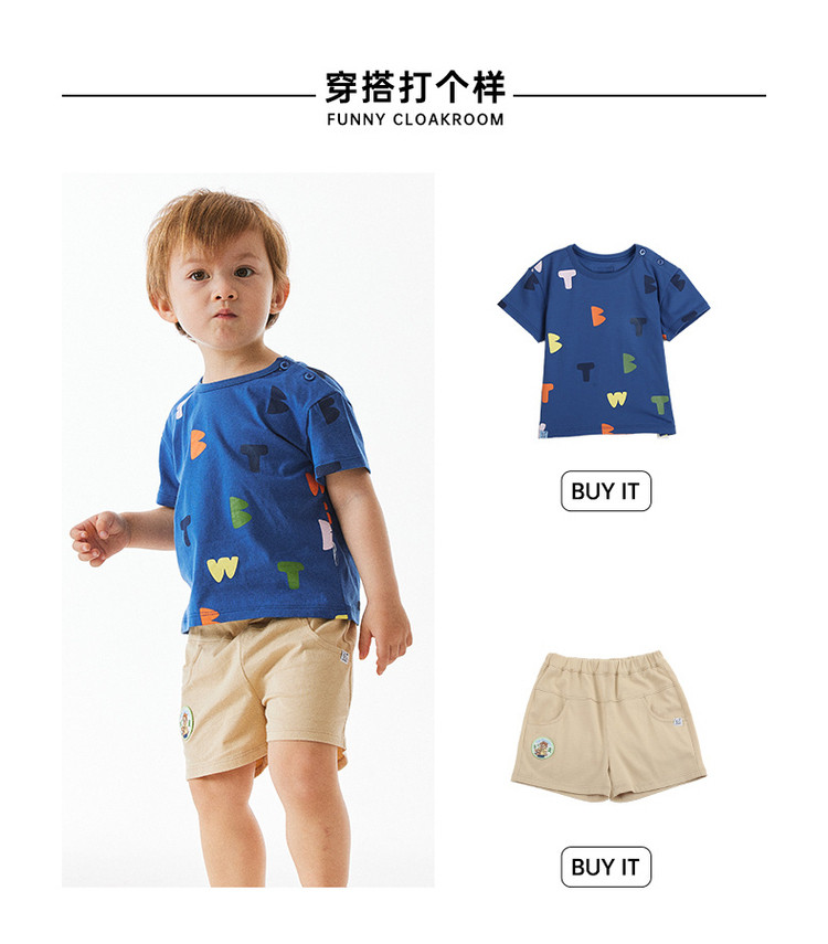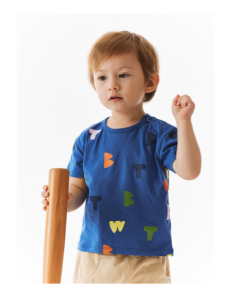 商品名称:小熊童装男宝宝夏纯棉满印LOGO短袖T恤 097345