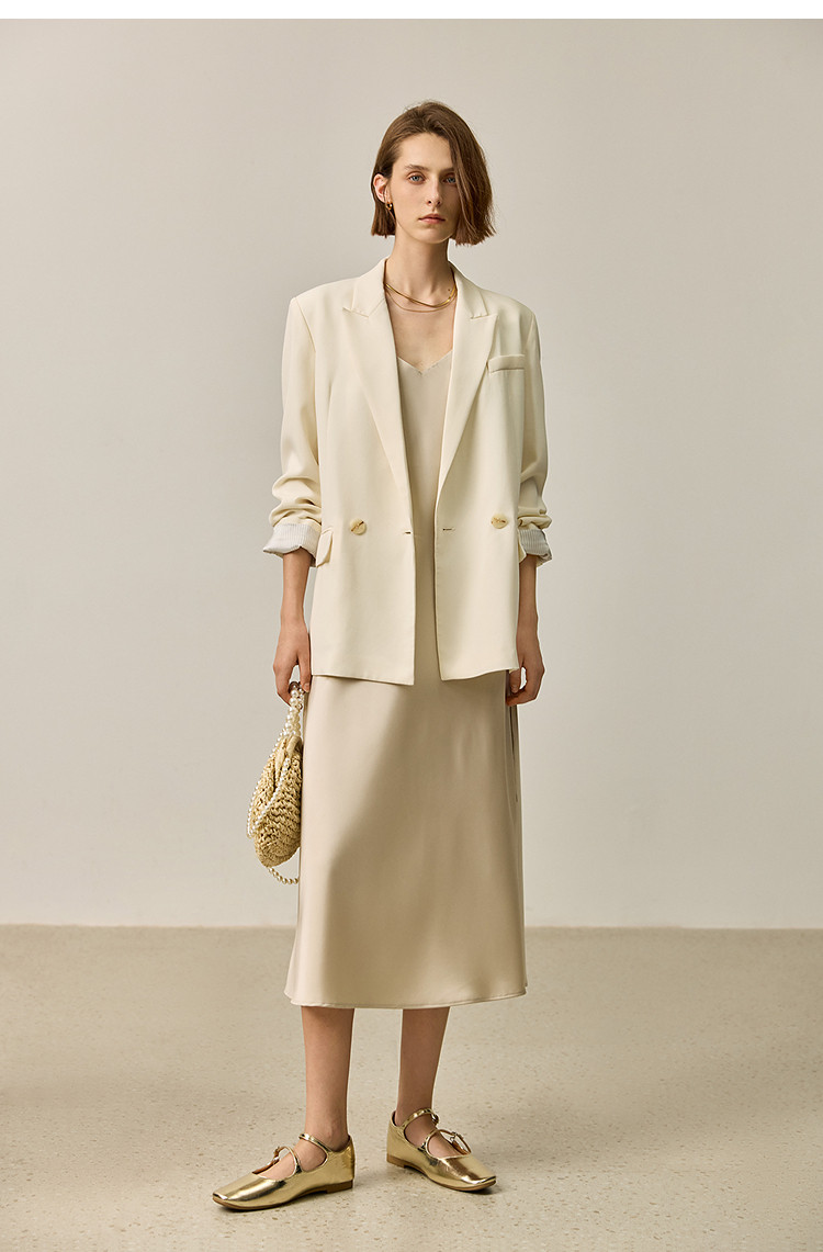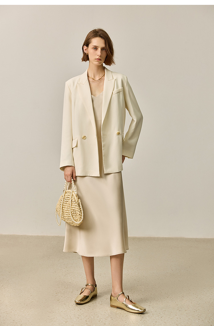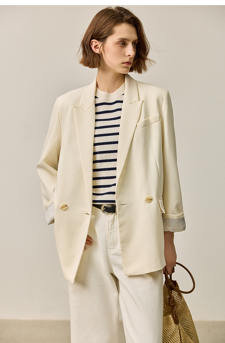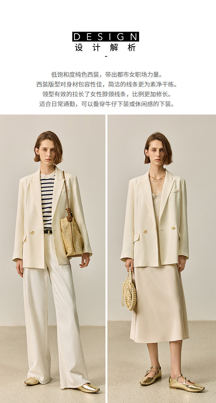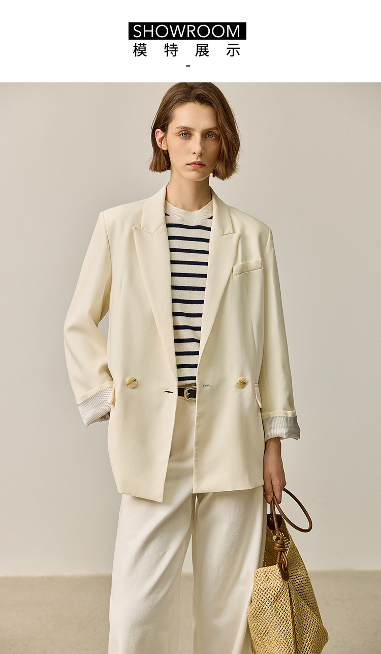 商品名称:【商场同款】【春季款】干爽醋酸优雅宽松双排扣西装外套 320475