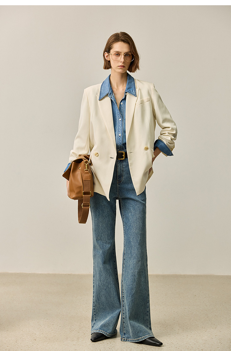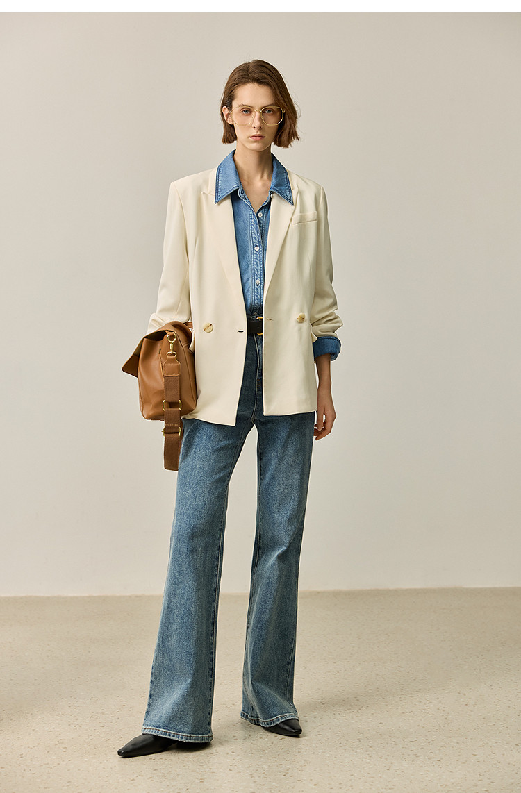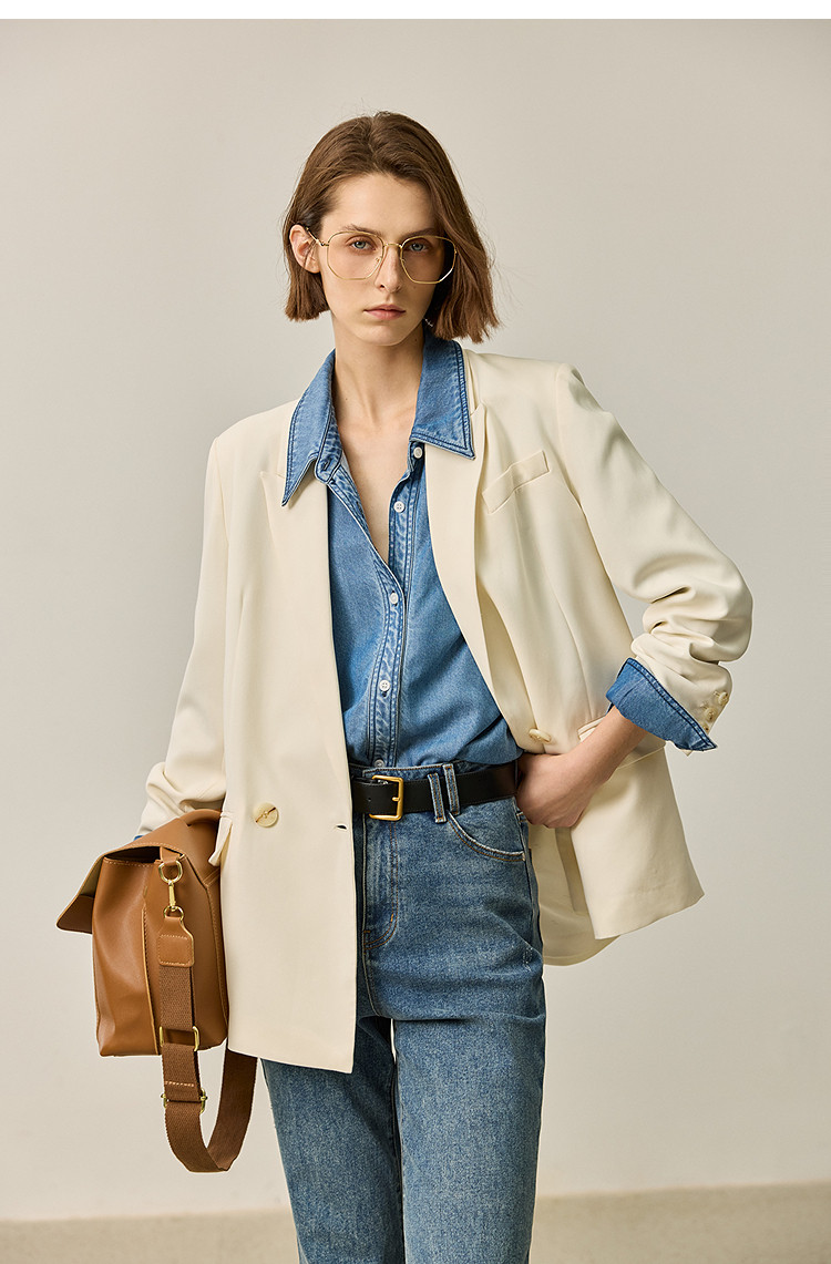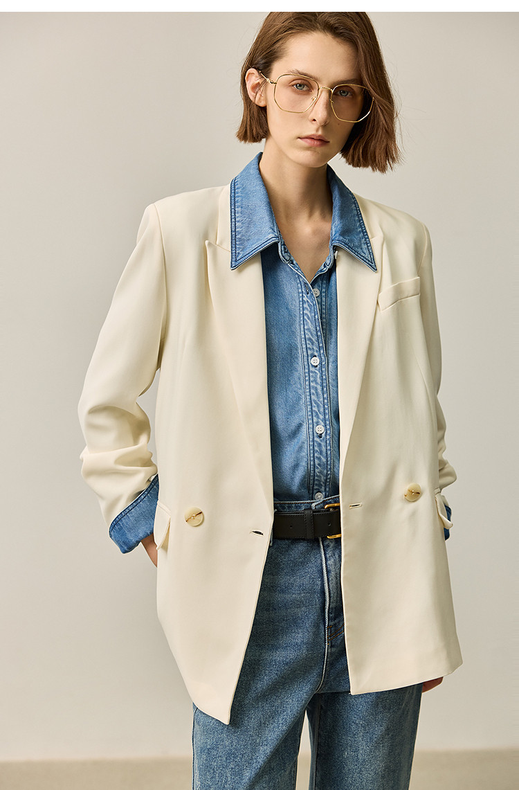 【商场同款】【春季款】干爽醋酸优雅宽松双排扣西装外套 320475