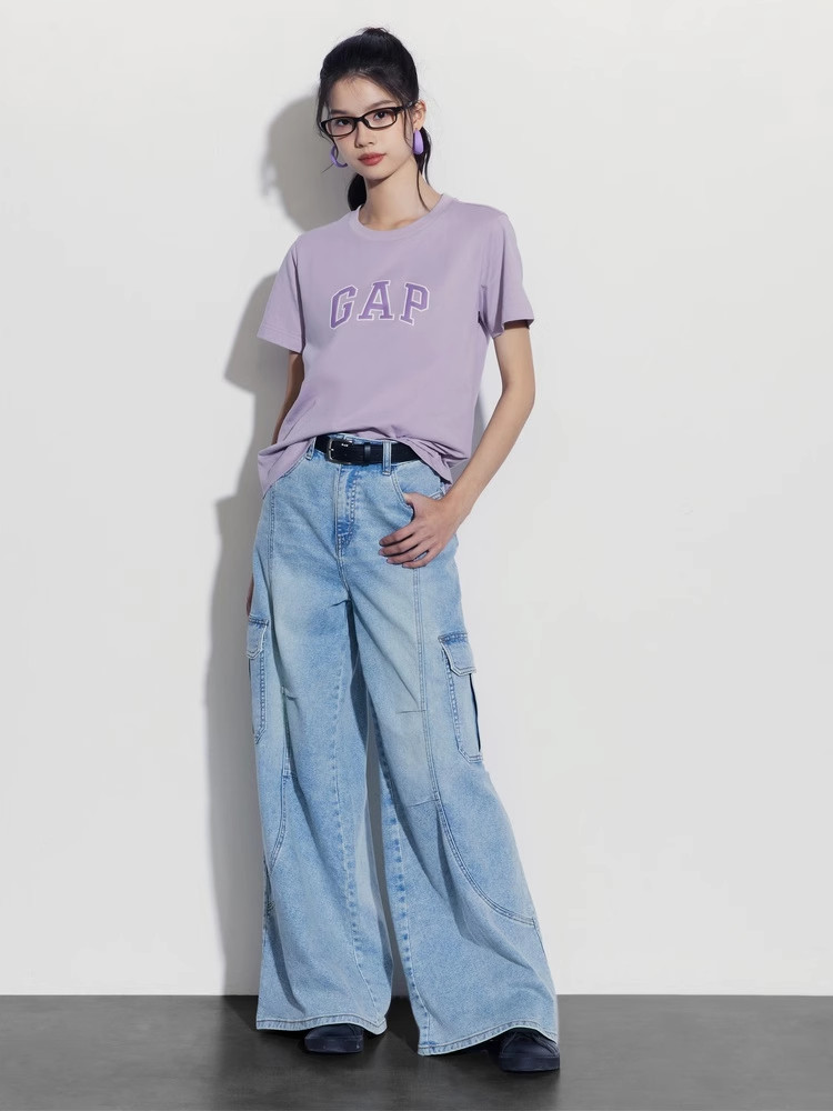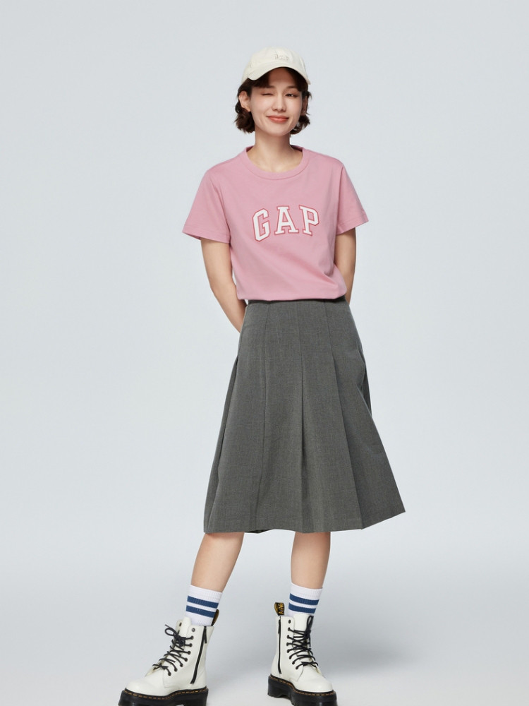 Gap女装夏季款泡泡印花LOGO圆领短袖T恤纯棉上衣402168 289242