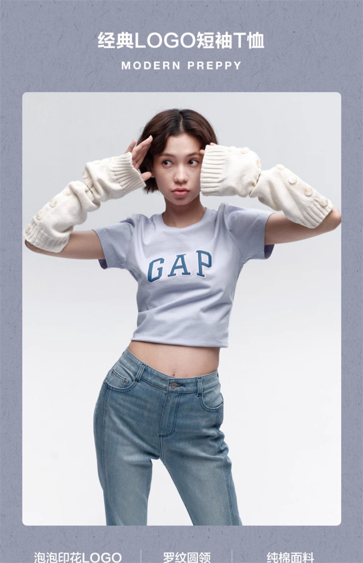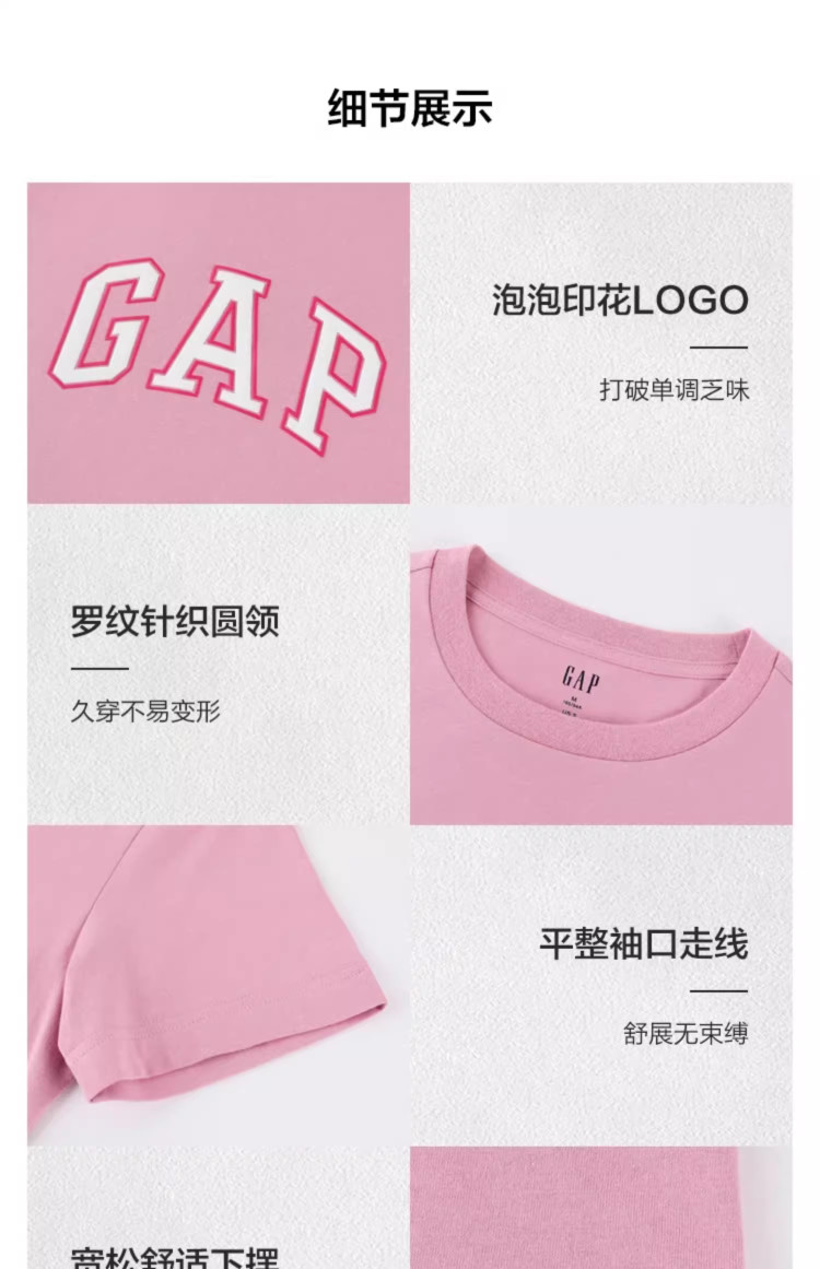 商品名称:Gap女装夏季款泡泡印花LOGO圆领短袖T恤纯棉上衣402168 289242