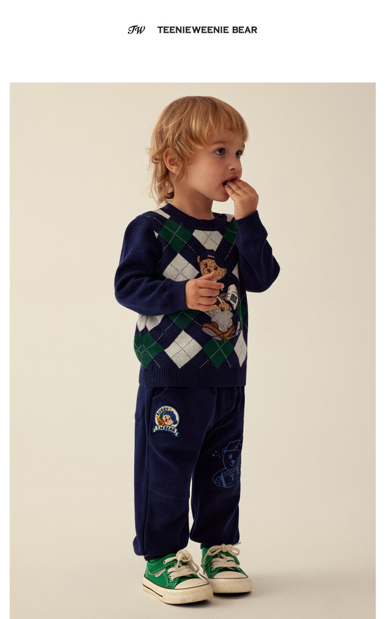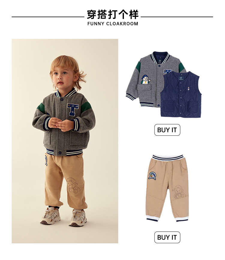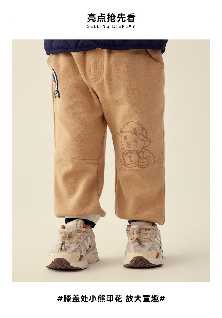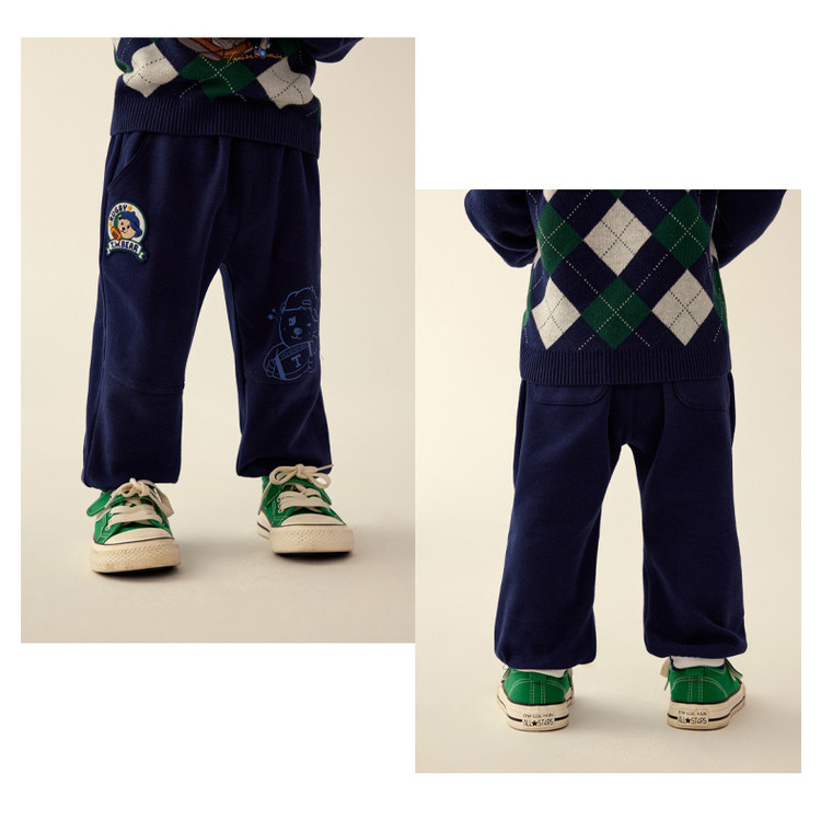 小熊童装男宝宝秋季宽松运动束脚长裤 440577