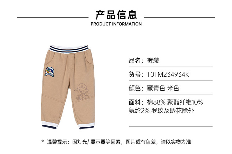 商品名称:小熊童装春季男宝宝休闲撞色条纹束脚裤 188801