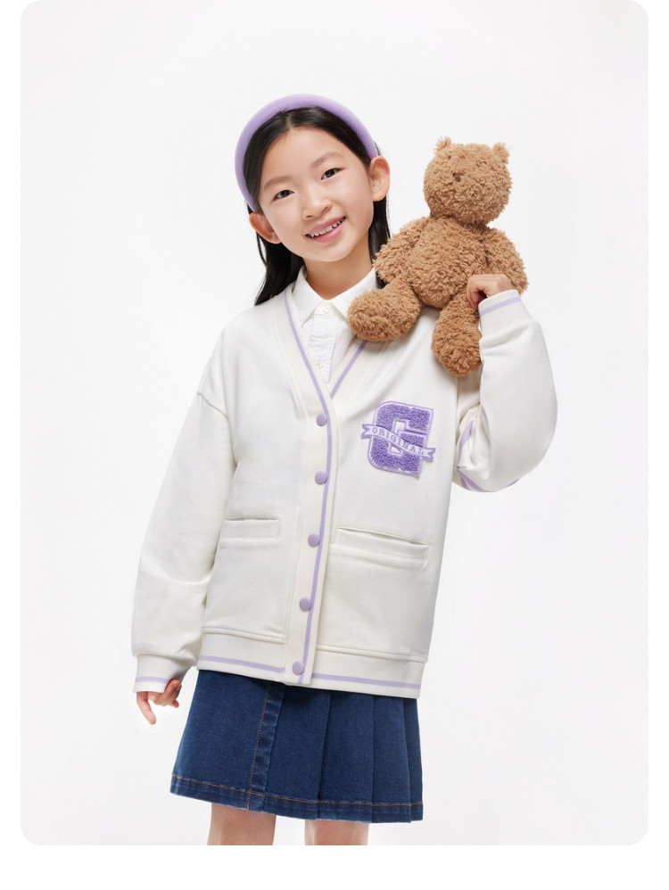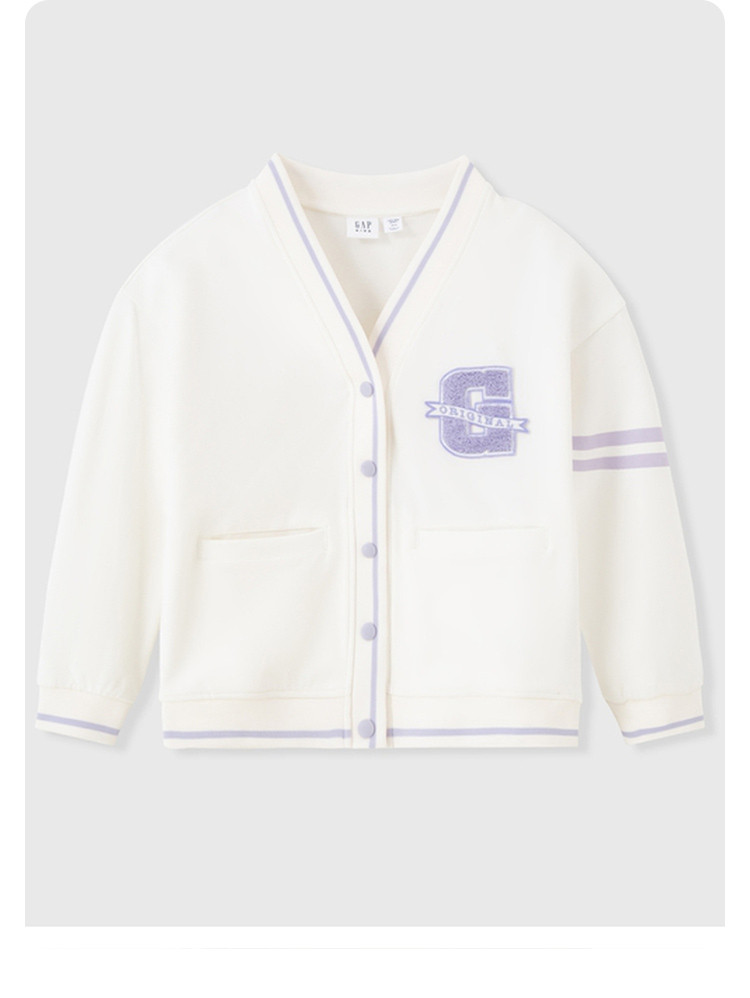 Gap女童LOGO撞色V领大G开衫儿童洋气时髦外套891984 791706