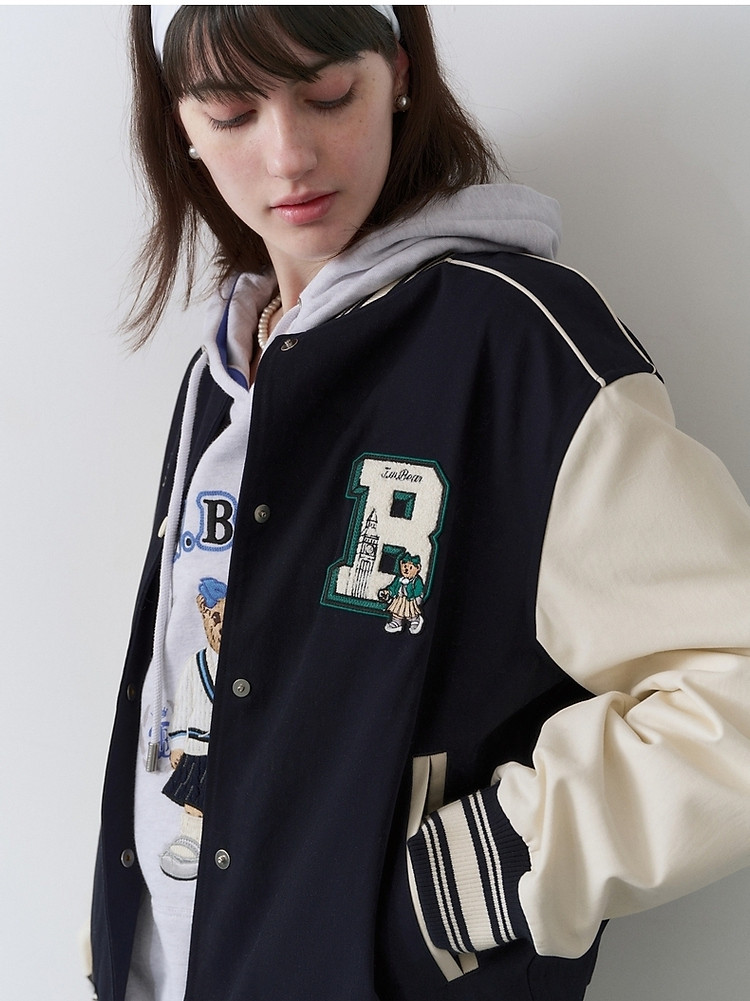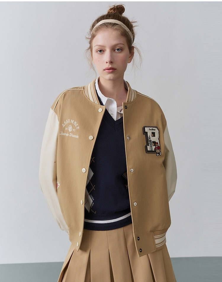 小熊春季休闲时尚学院风撞色棒球外套上衣女 186241