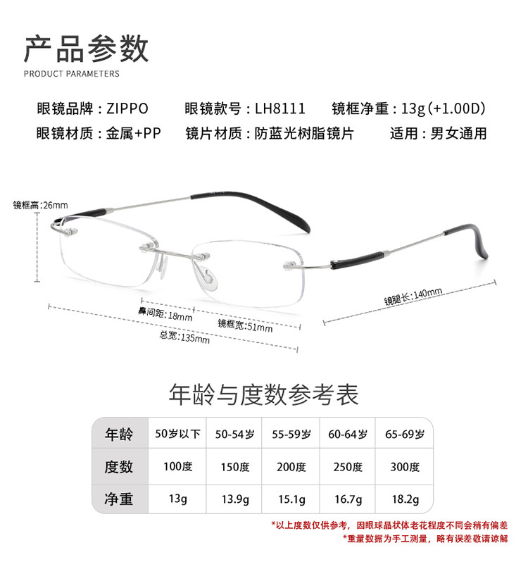 商品名称:无框超轻老花镜男女防蓝光高清显年轻女式老花眼镜花镜女士 704478
