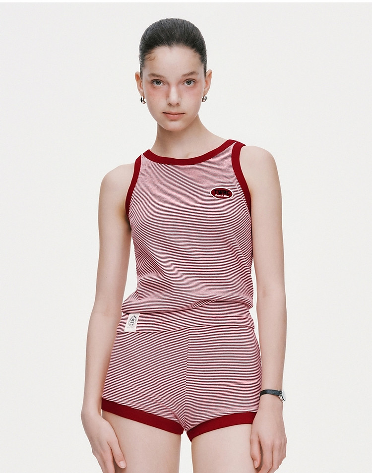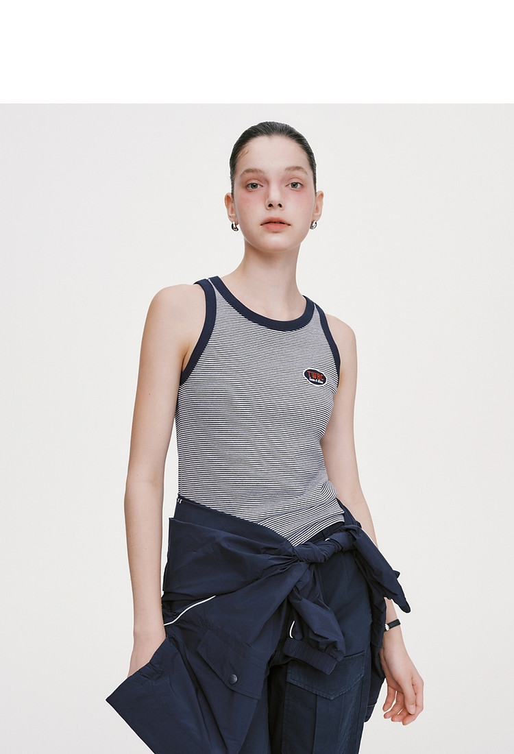 商品名称:小熊女装条纹运动休闲背心打底衫T恤修身美式复古时尚 277825
