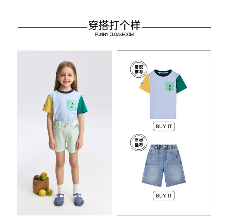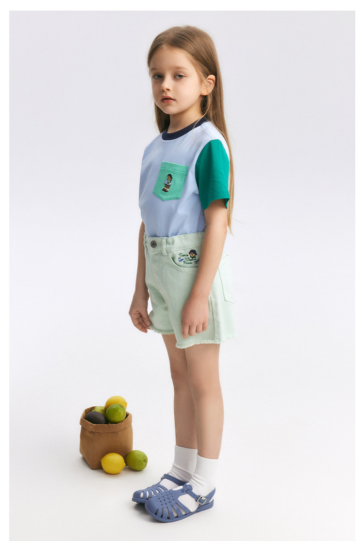 商品名称:【牛仔裤】小熊童装夏季女童舒适时尚活力牛仔热裤 090369