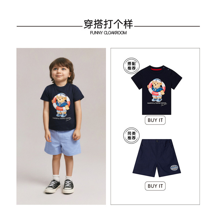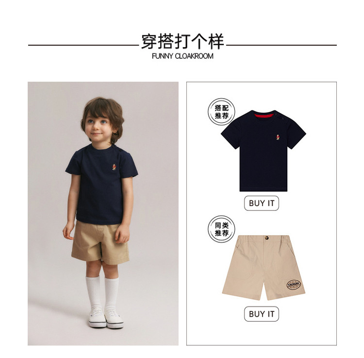 商品名称:小熊童装夏季男宝宝简约休闲刺绣短裤 128449