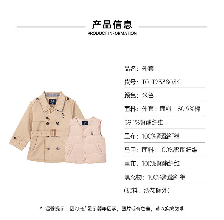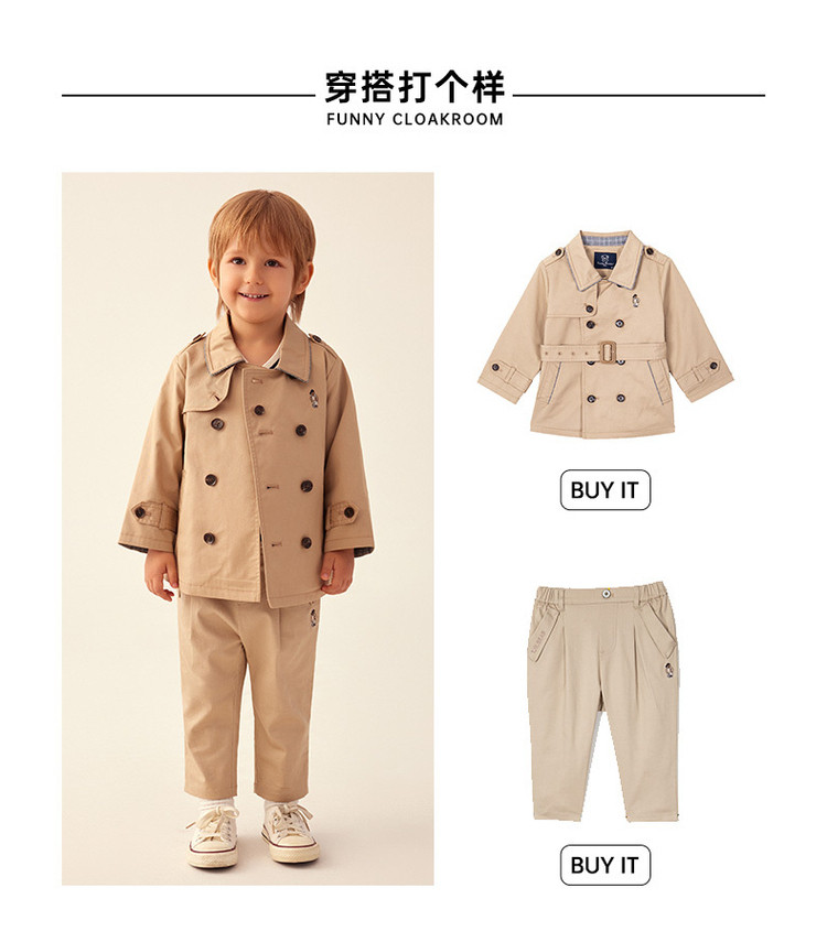 商品名称:小熊童装男宝宝秋季英伦风风衣两件套 897025
