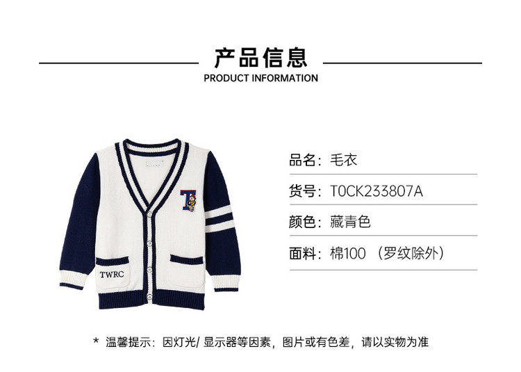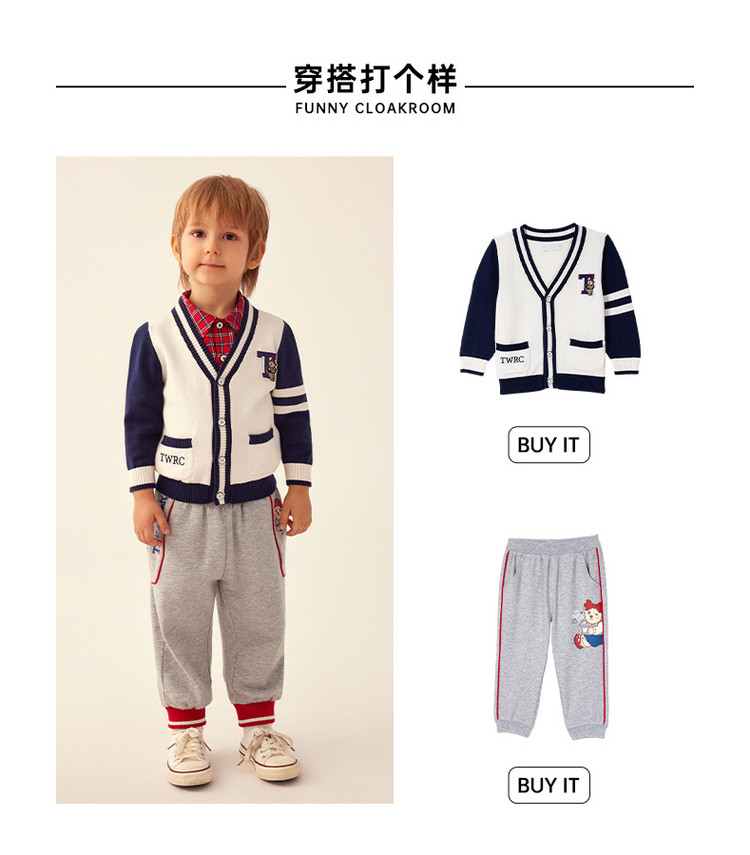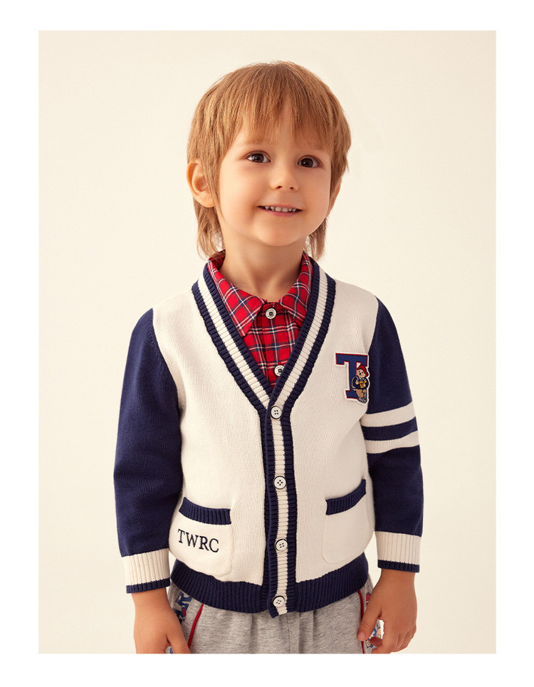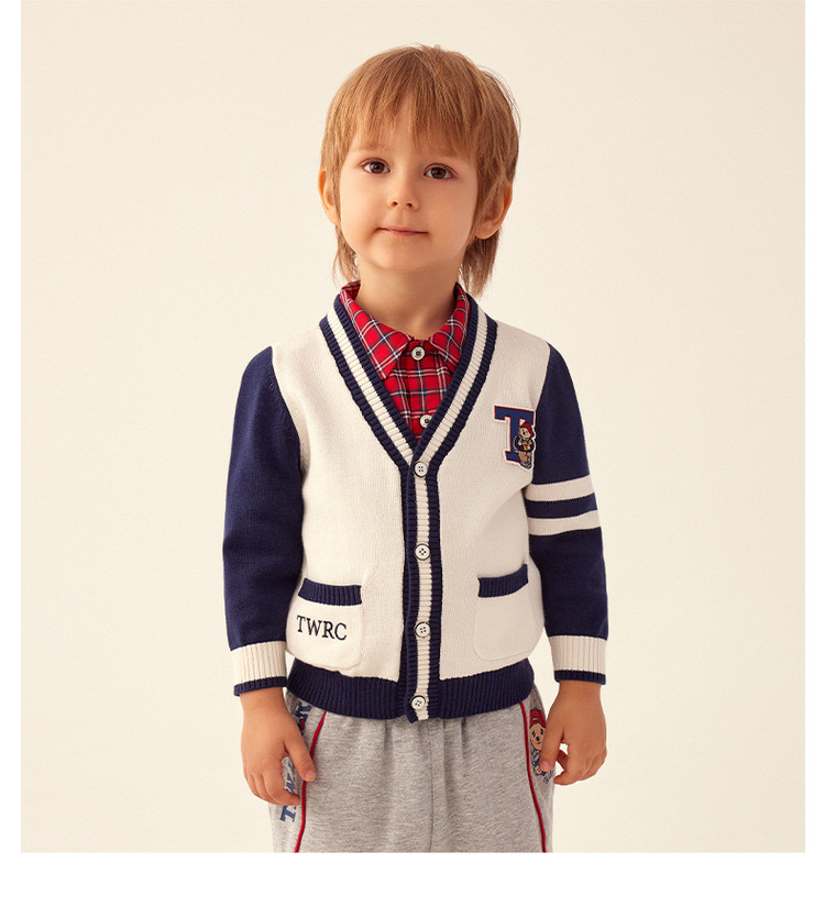 商品名称:小熊童装男宝宝秋季拼接撞色针织开衫 493825