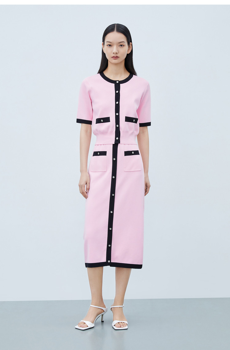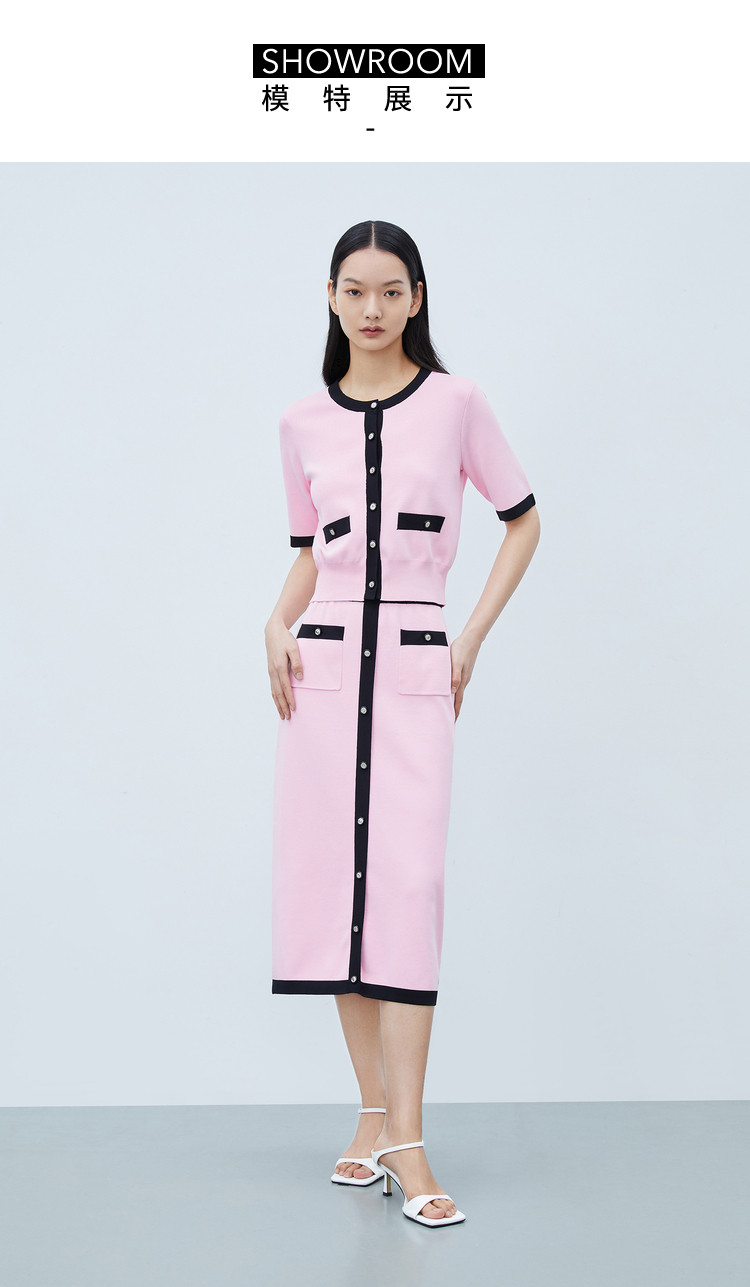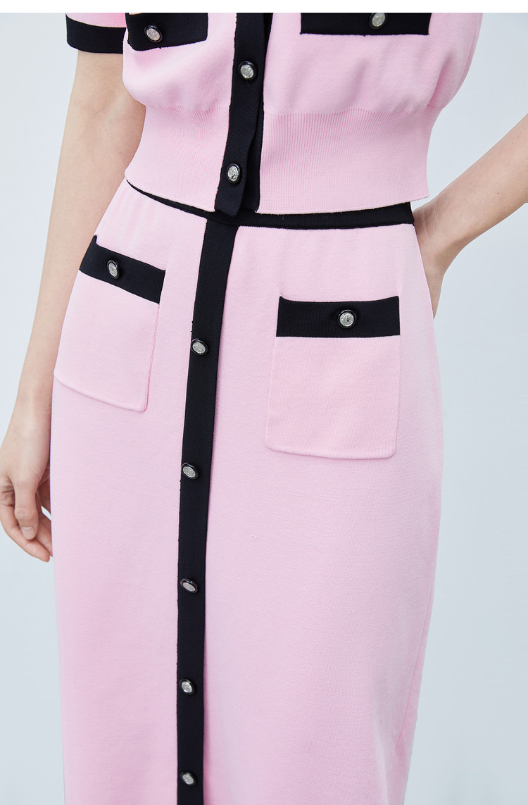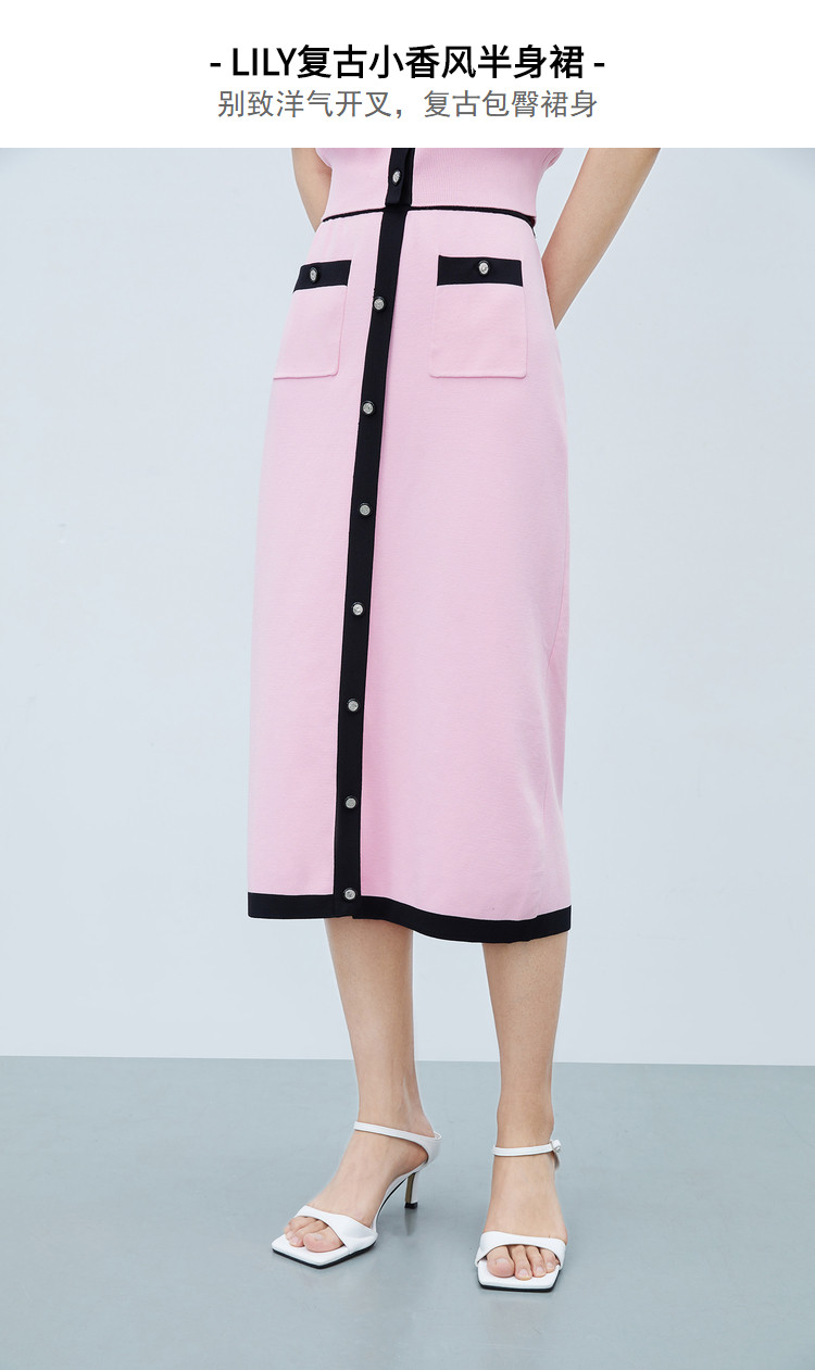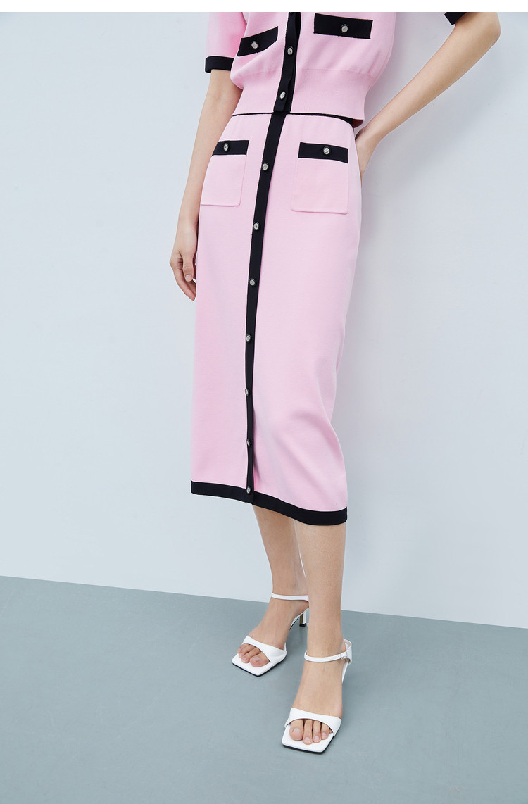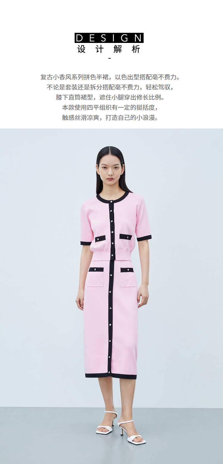 【商场同款】夏季复古小香风别致排扣针织半身裙 814491