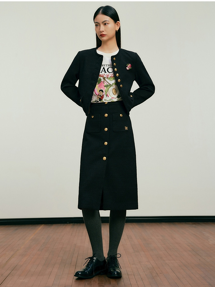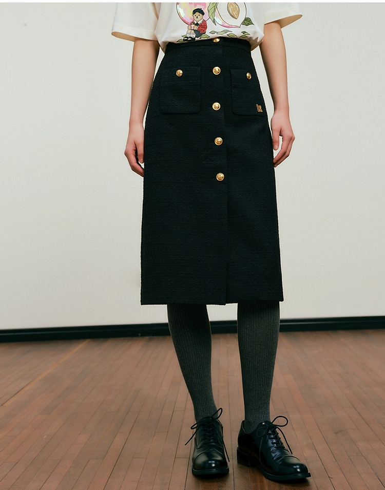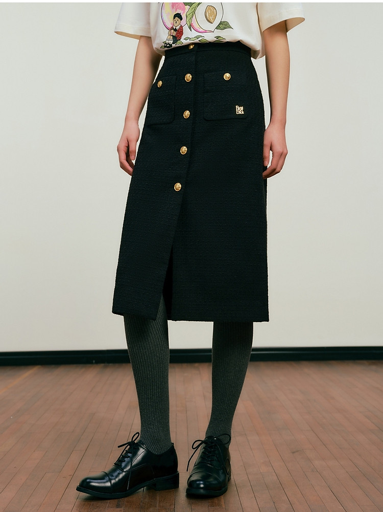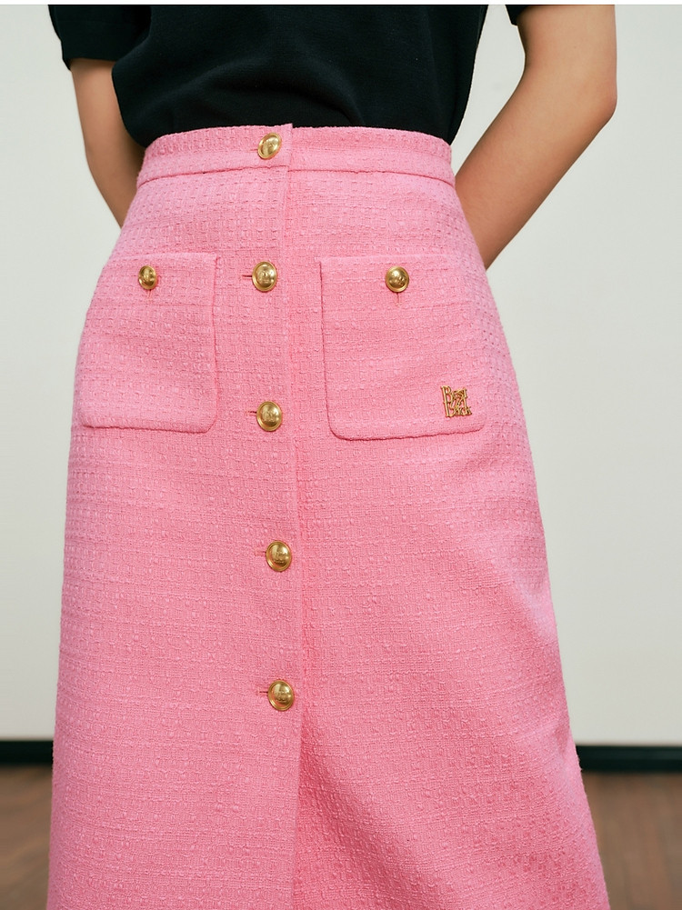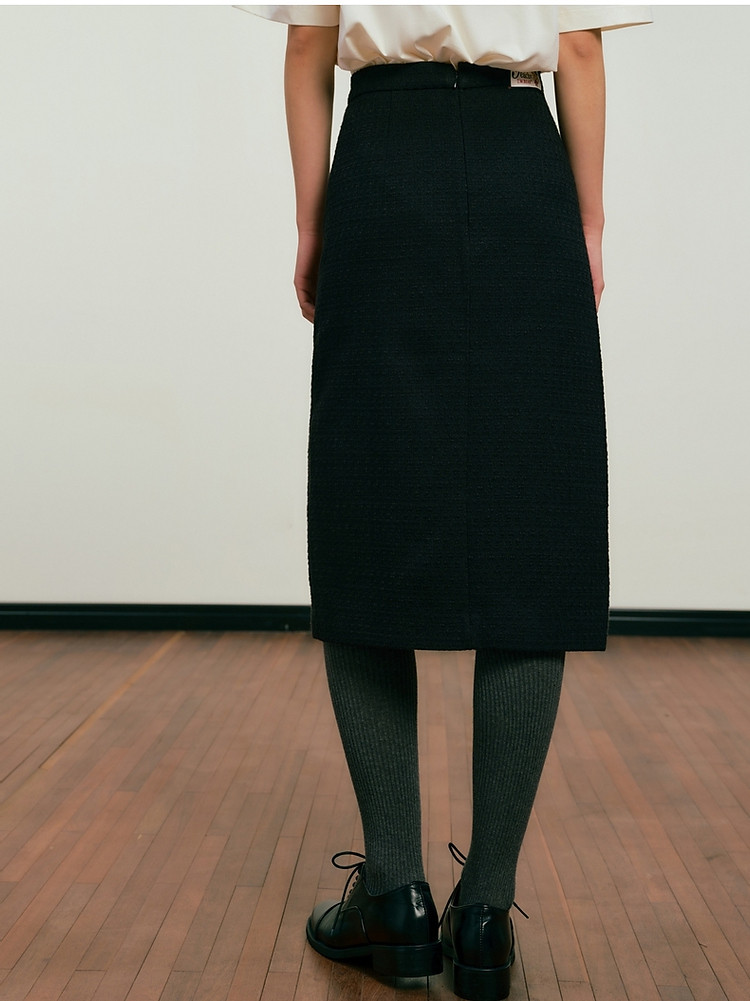 商品名称:小熊春秋款小香风包臀直筒粗花呢长半裙女装 274369