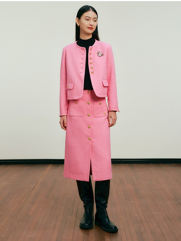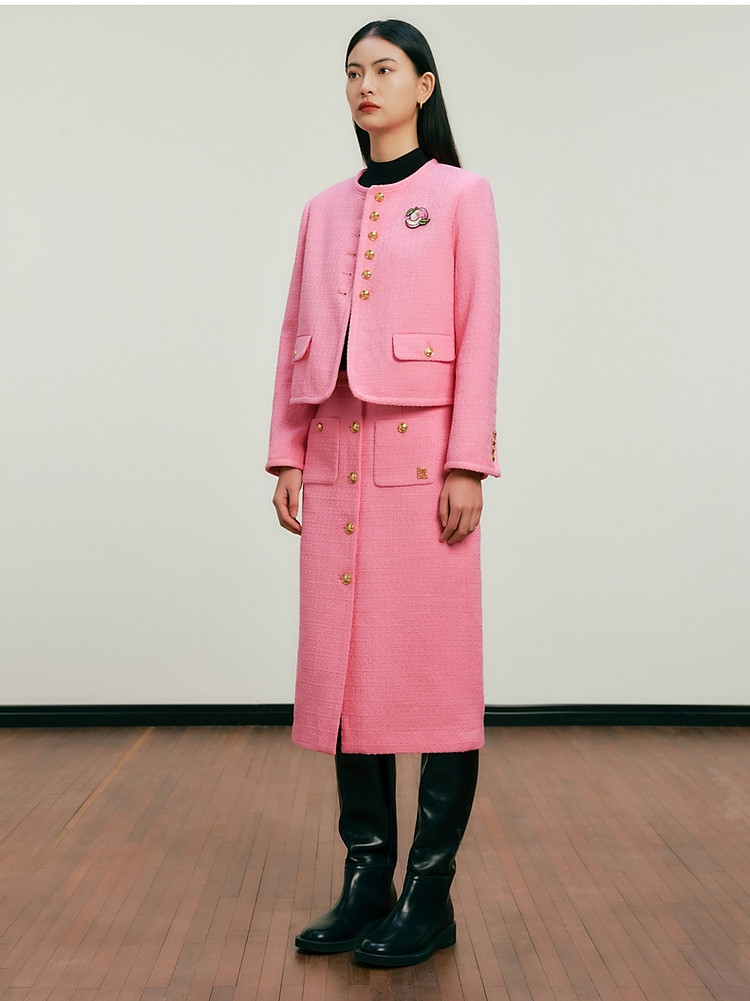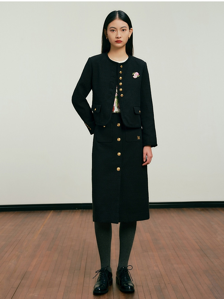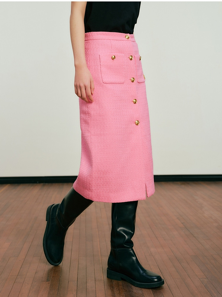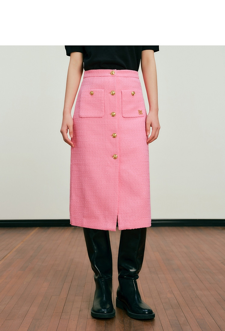 商品名称:小熊春秋款小香风包臀直筒粗花呢长半裙女装 274369