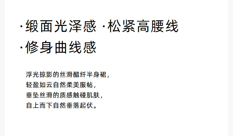 商品名称:微光裙垂感丝滑醋酸气质优雅显瘦A字高腰半身裙 303771