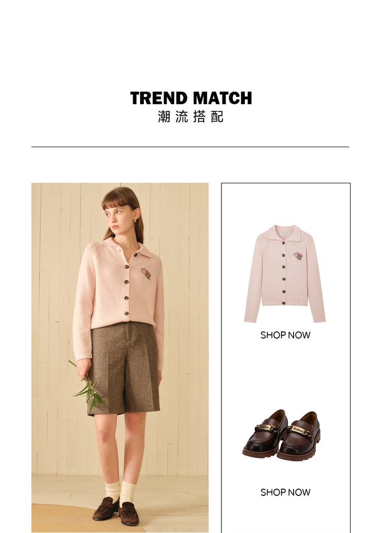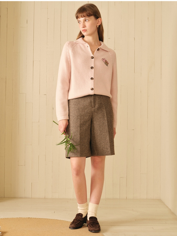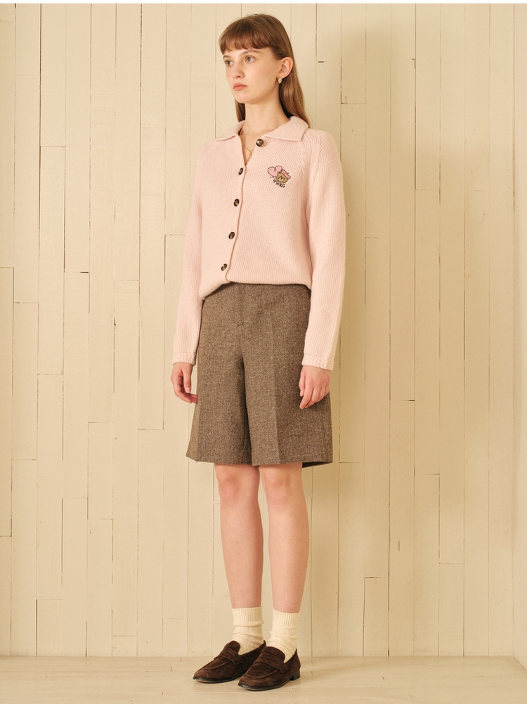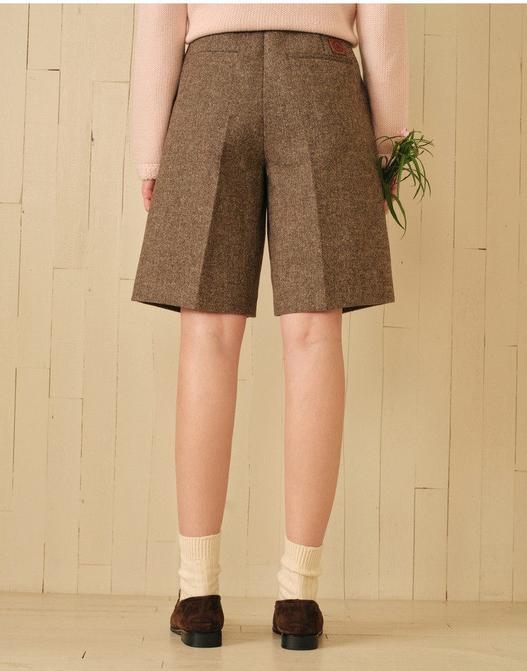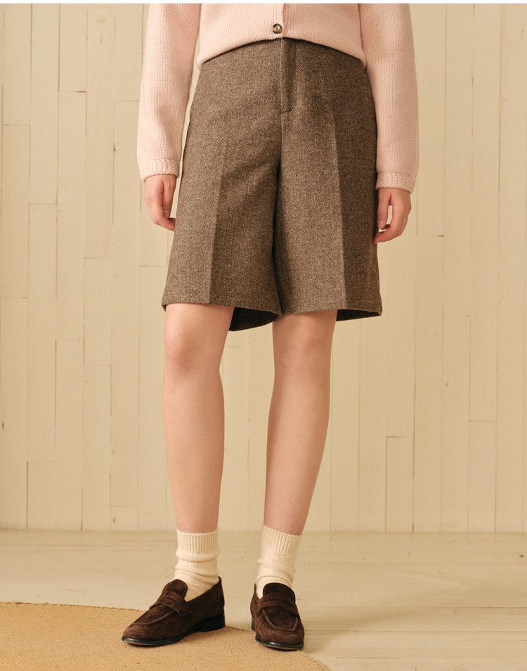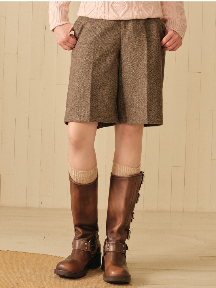 小熊春秋款绵羊毛混纺五分短裤休闲裤直筒女士 695361