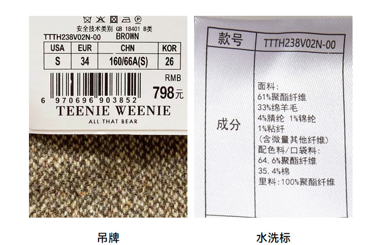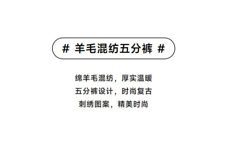 商品名称:小熊春秋款绵羊毛混纺五分短裤休闲裤直筒女士 695361