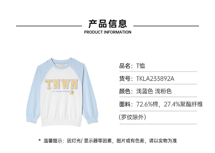 商品名称:小熊童装男女童秋季马卡龙插肩长袖T恤 300353