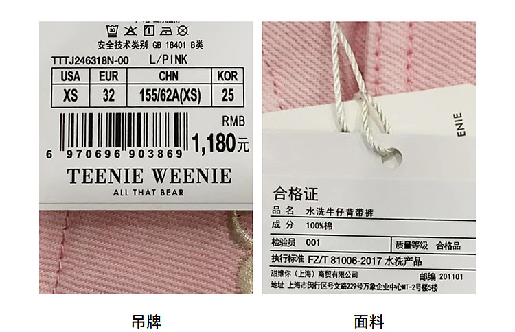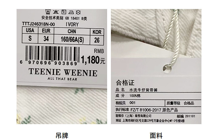 商品名称:小熊女装多巴胺牛仔背带裤宽松阔腿长裤 851969