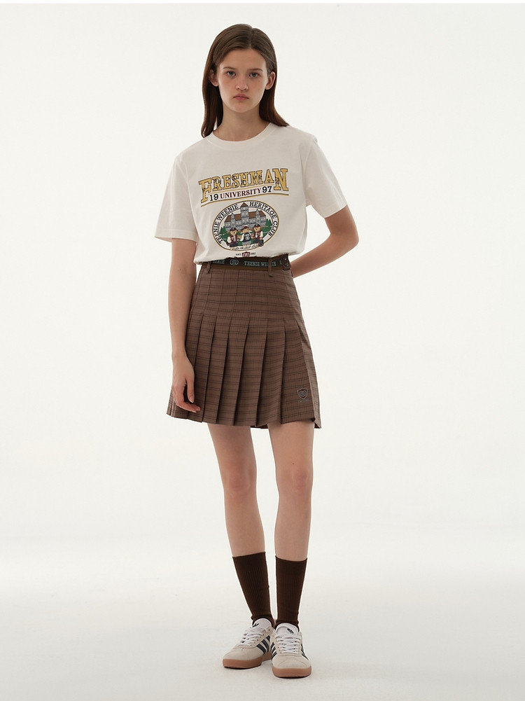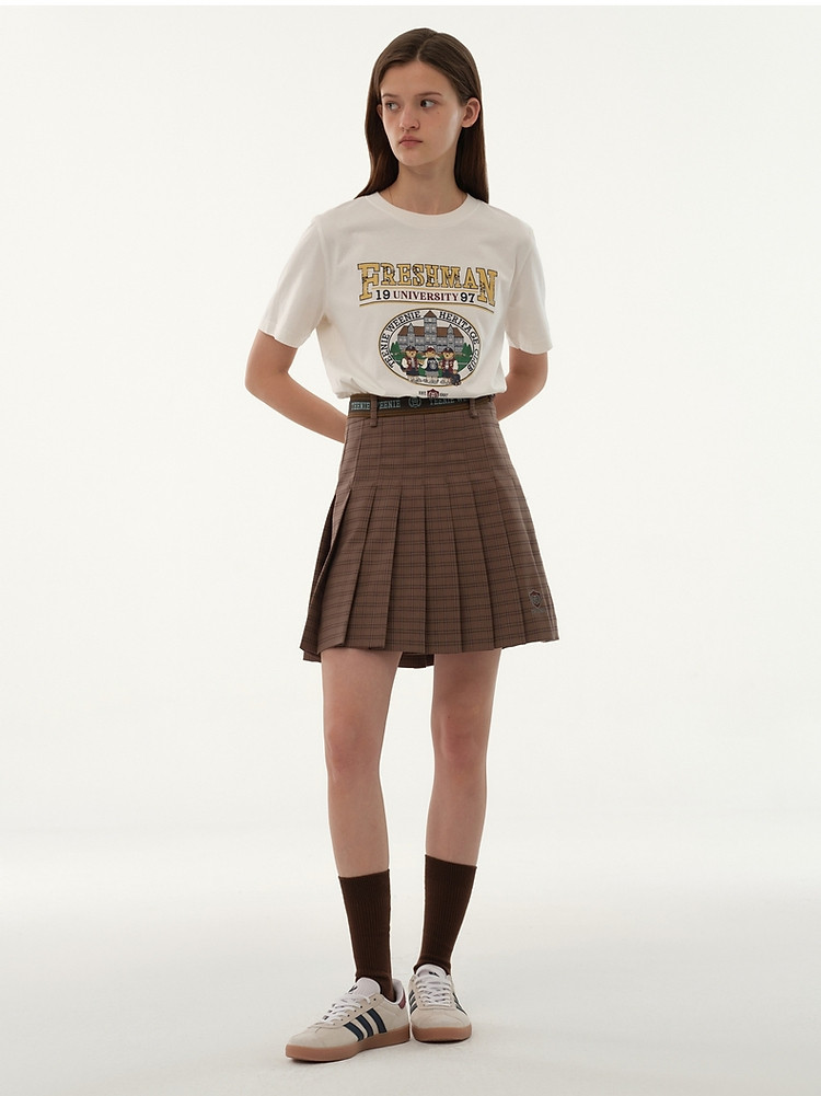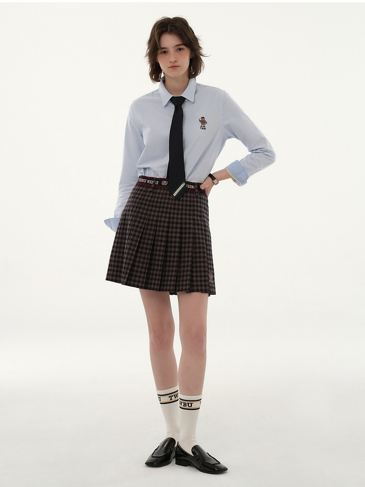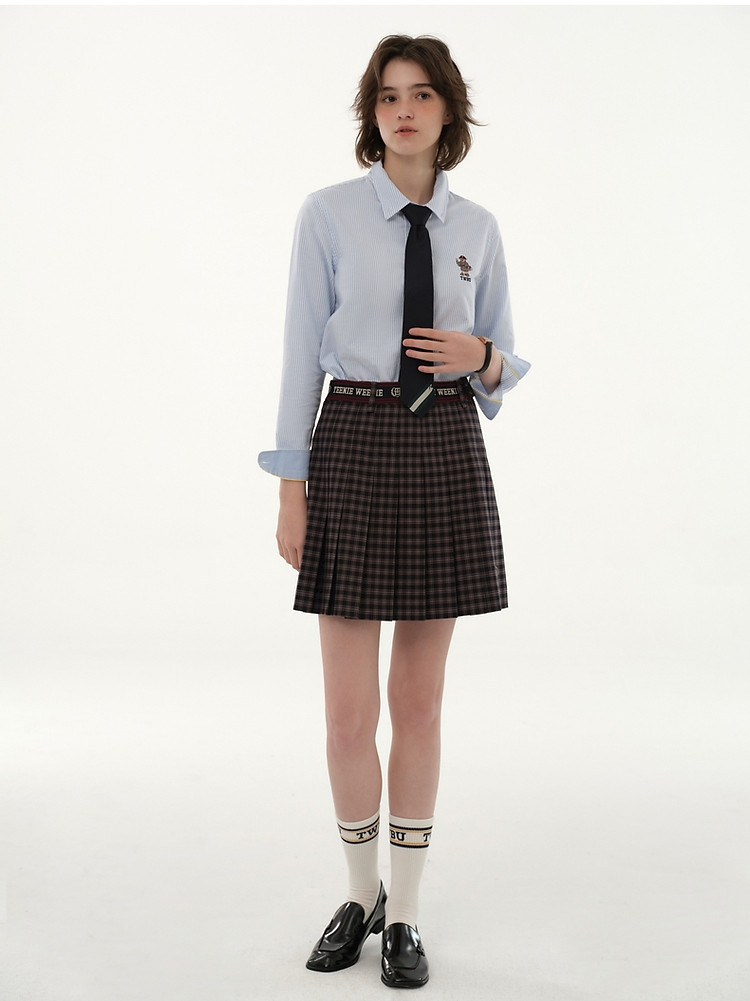 小熊格纹百褶短裙A字高腰时尚女裙半身裙 219713