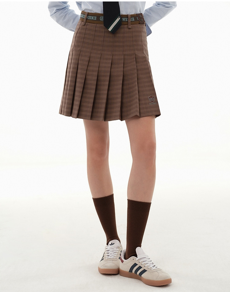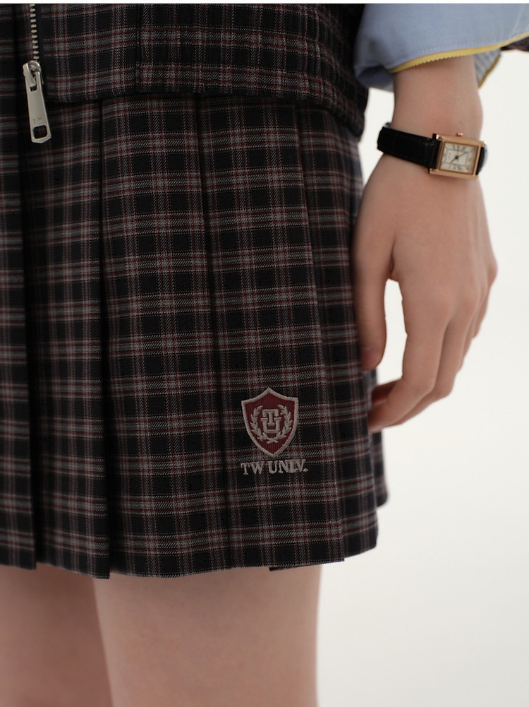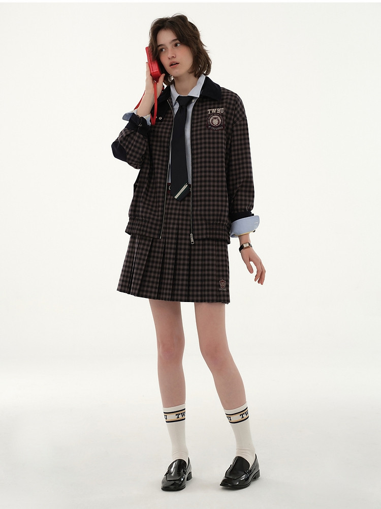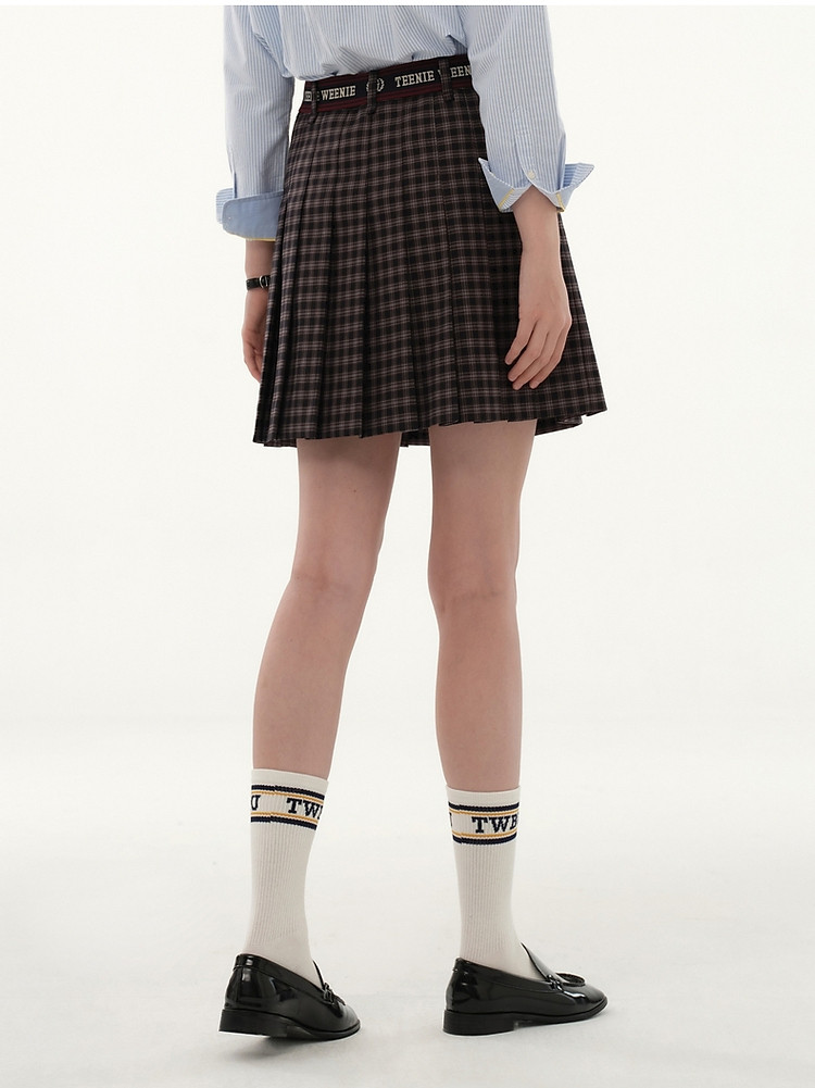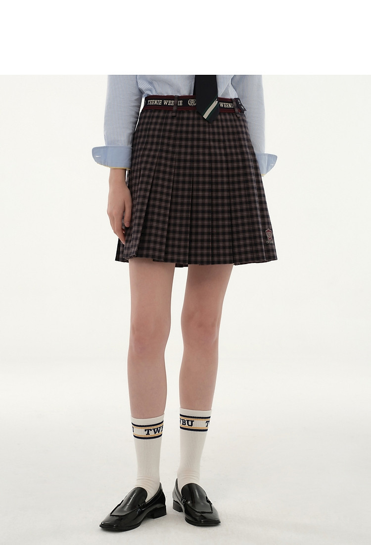 商品名称:小熊格纹百褶短裙A字高腰时尚女裙半身裙 219713
