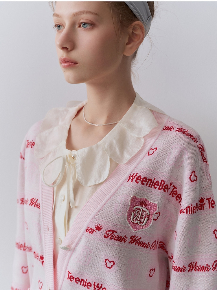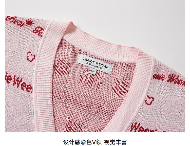小熊春秋款宽松V领针织开衫少女感毛衣外套女 295361