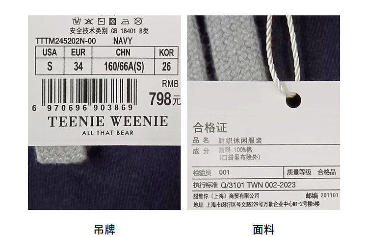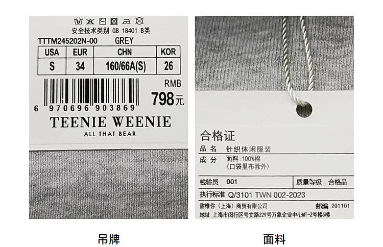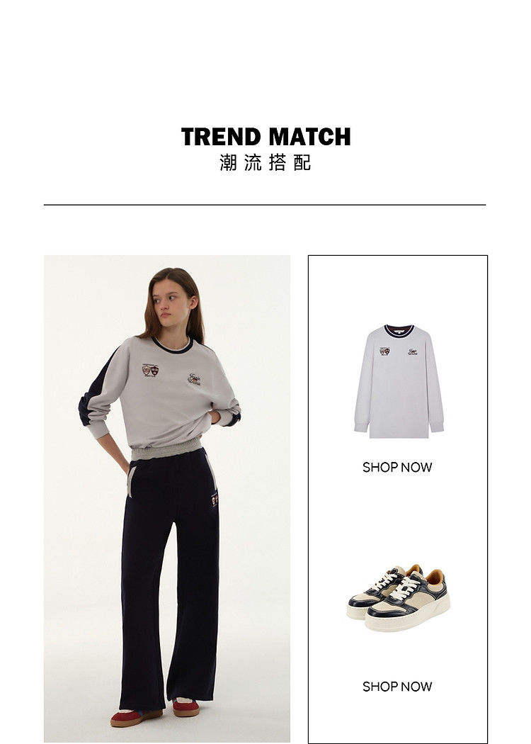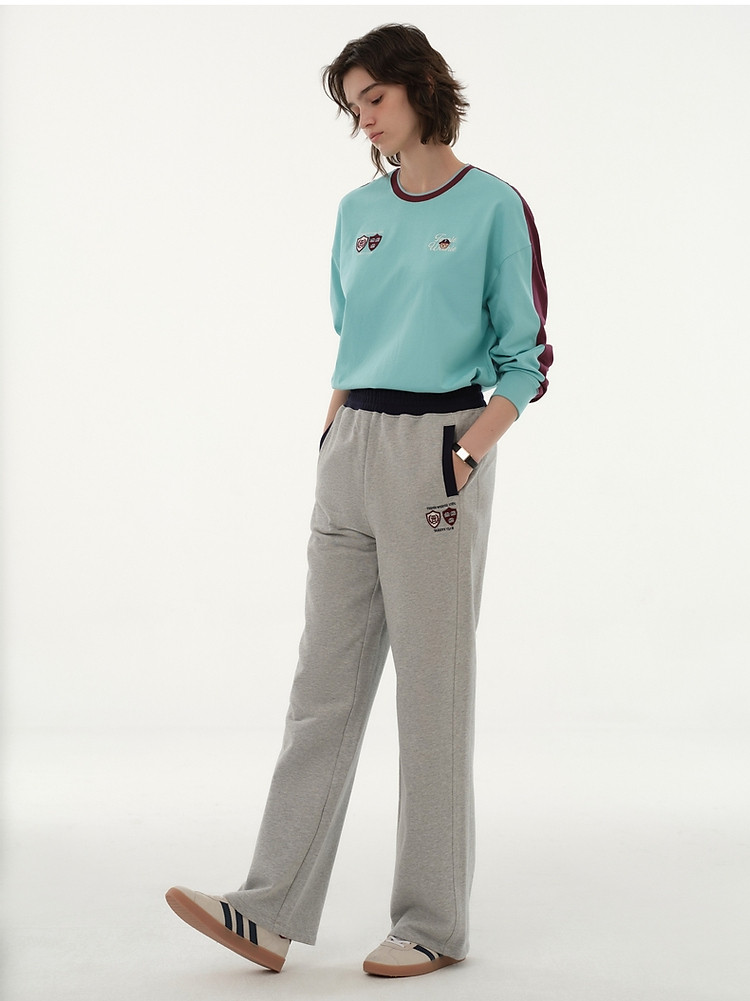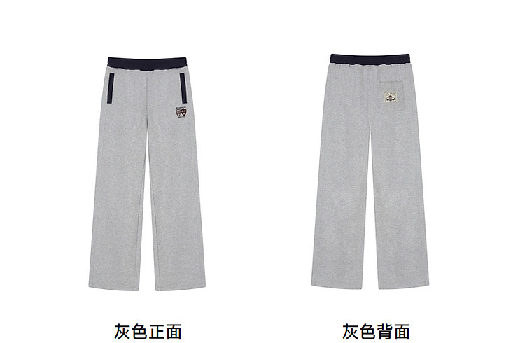 商品名称:小熊撞色灰色直筒卫裤宽松休闲时尚长裤女运动 889857