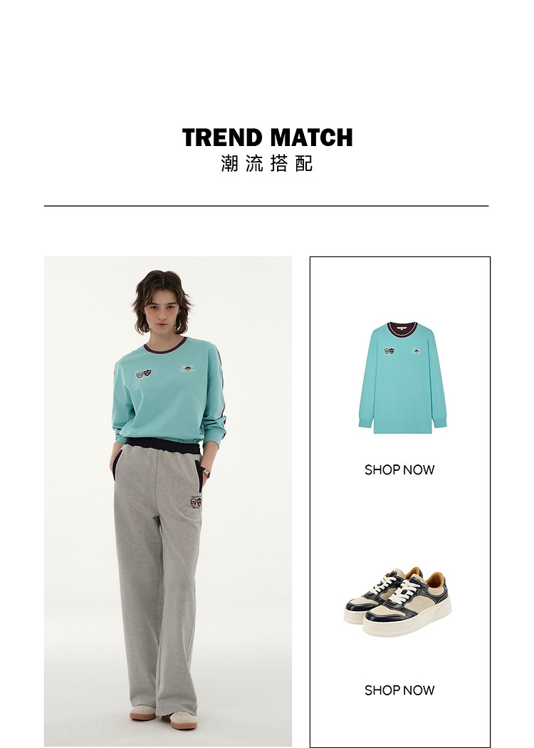 小熊撞色灰色直筒卫裤宽松休闲时尚长裤女运动 889857