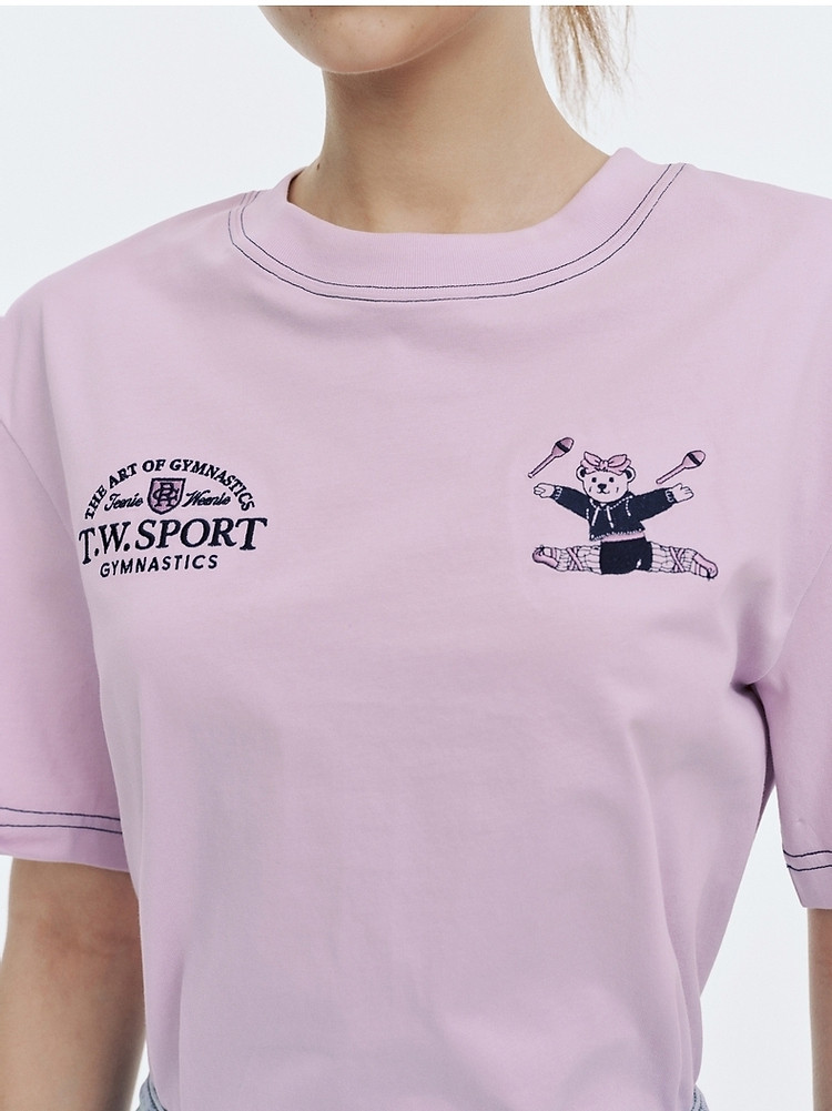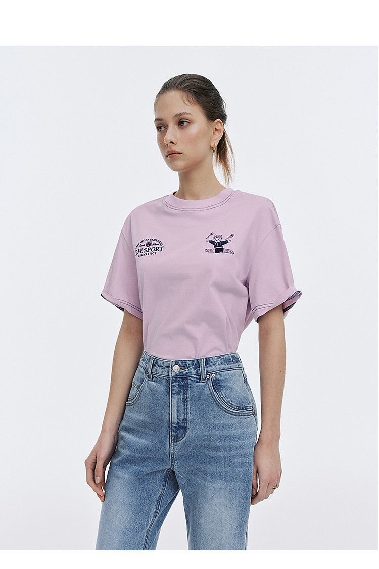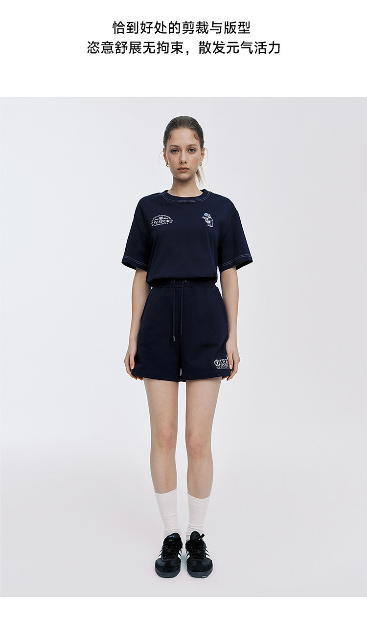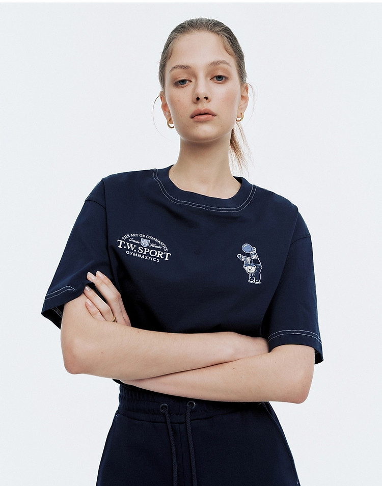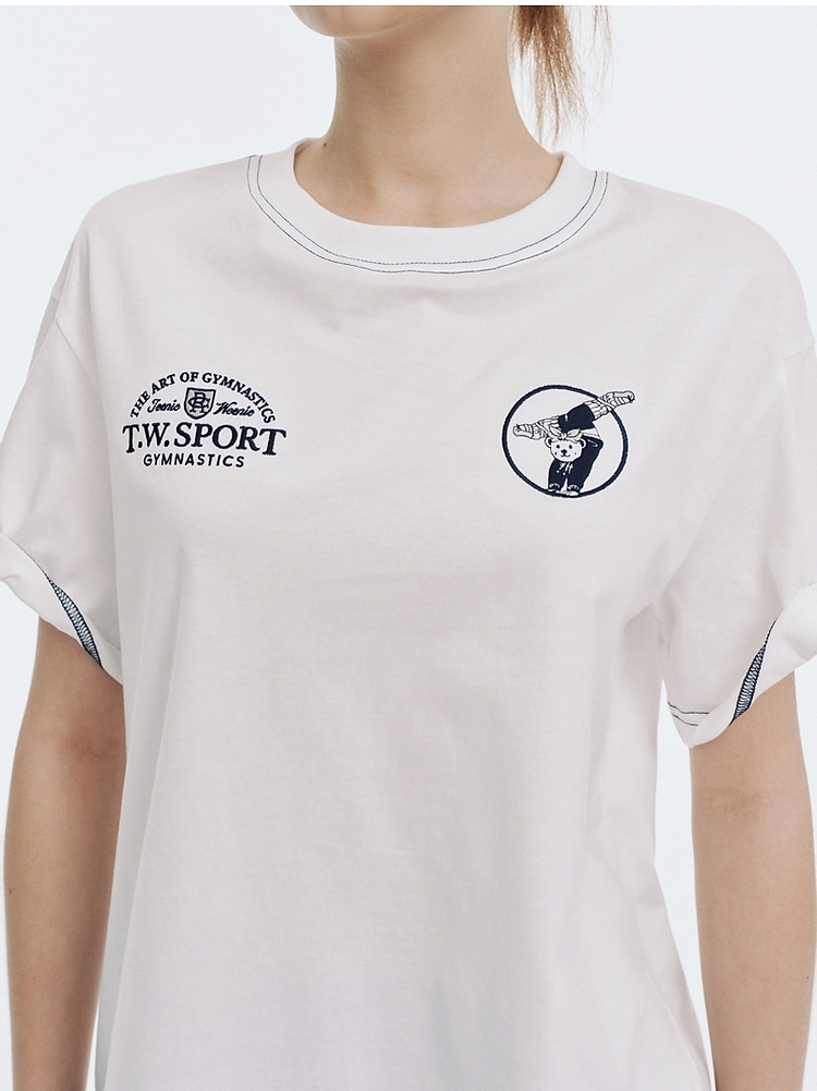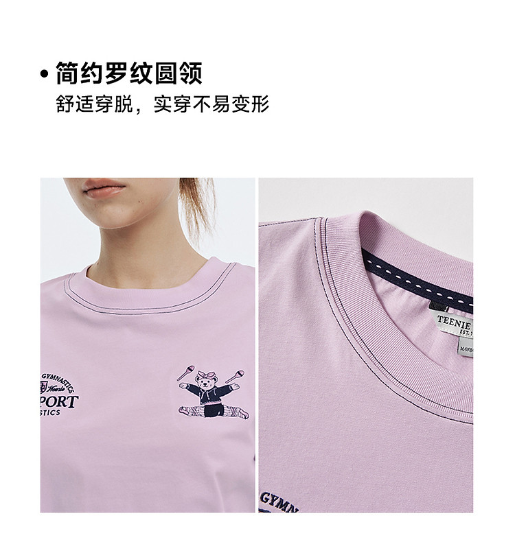 短袖T恤女夏季简约基础运动感小熊刺绣圆领T恤上衣女 188353