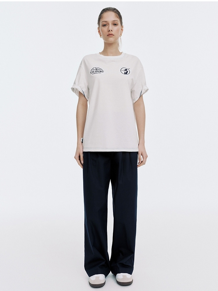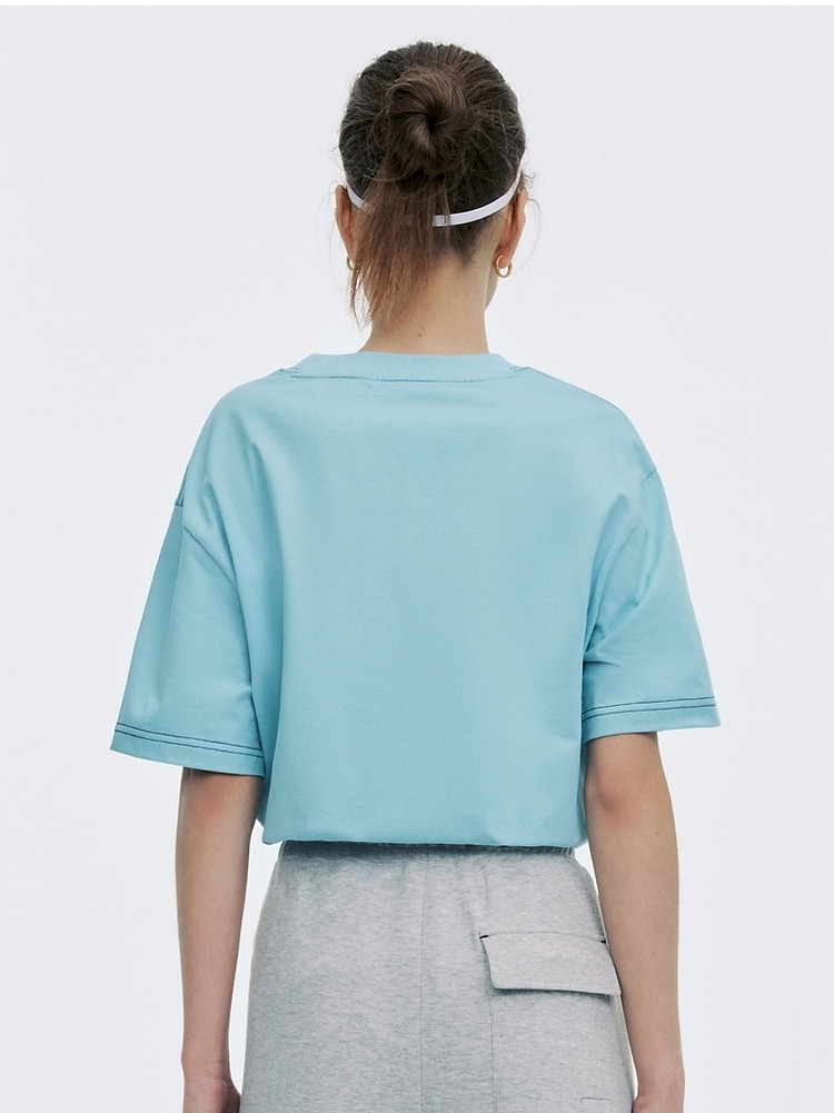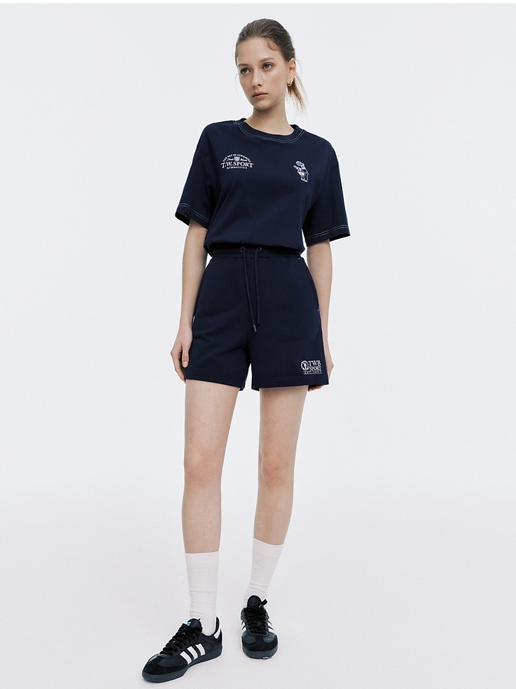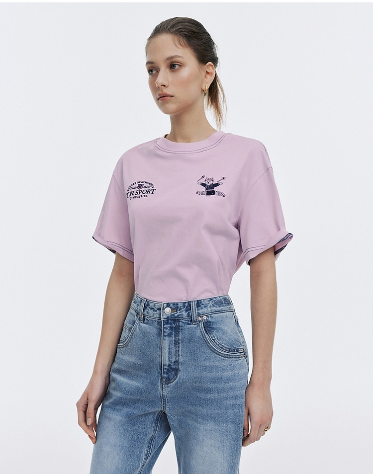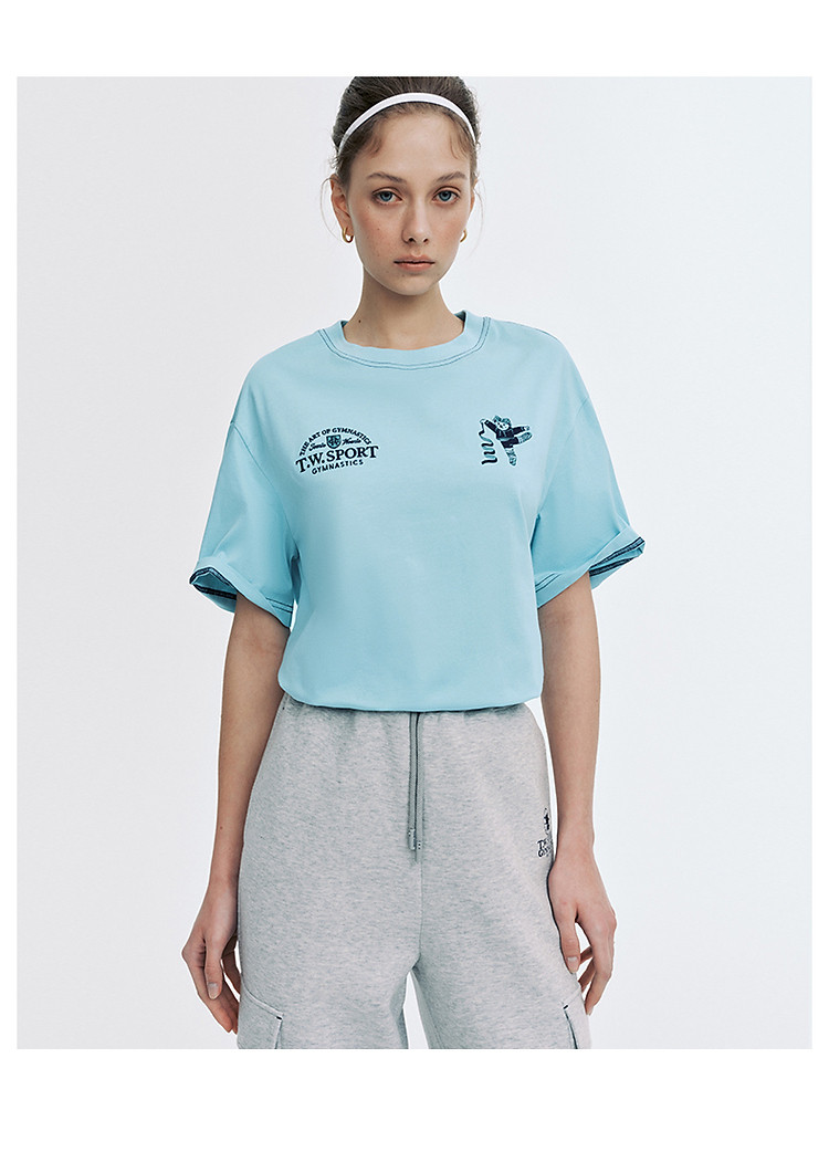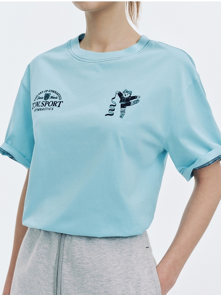 短袖T恤女夏季简约基础运动感小熊刺绣圆领T恤上衣女 188353