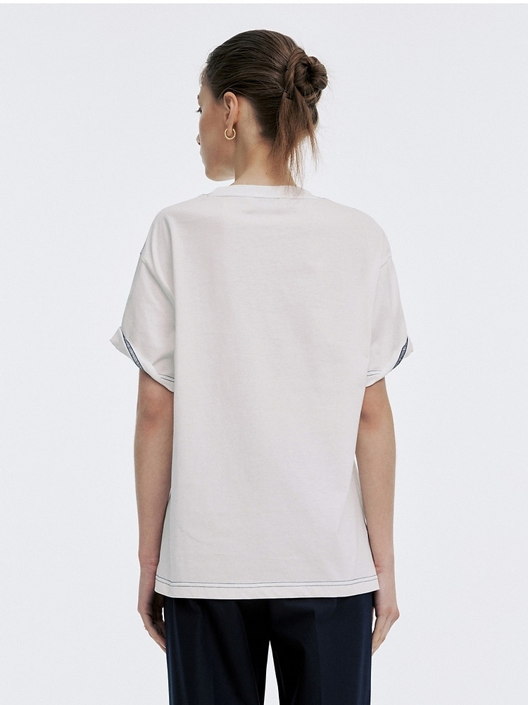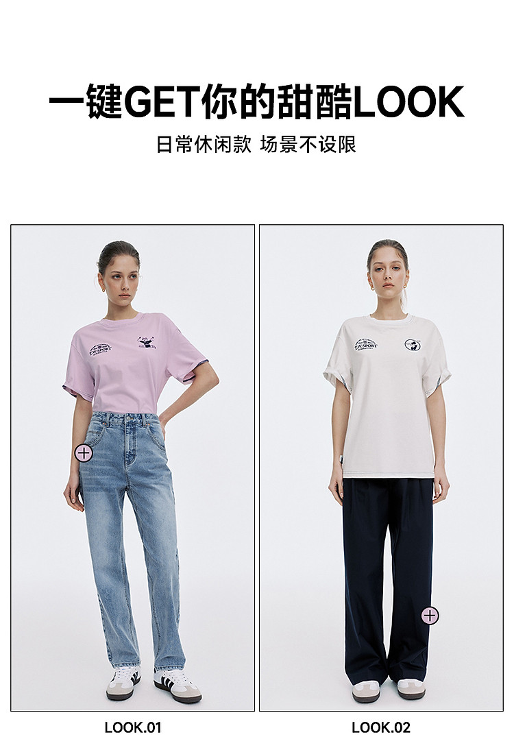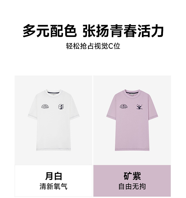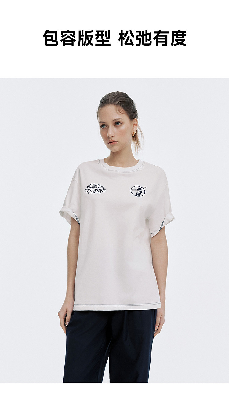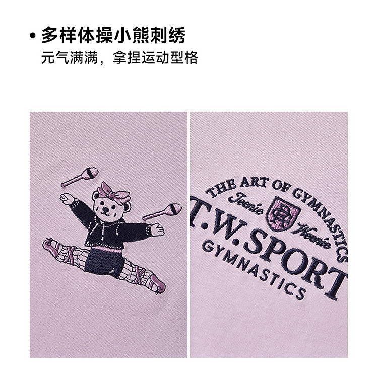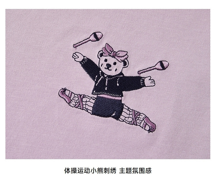 商品名称:短袖T恤女夏季简约基础运动感小熊刺绣圆领T恤上衣女 188353