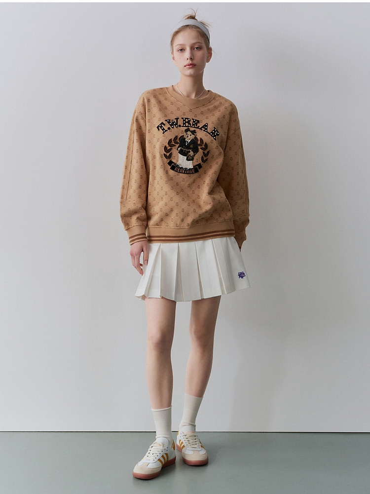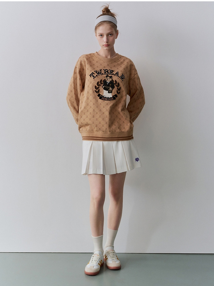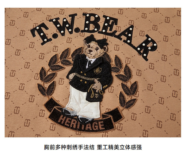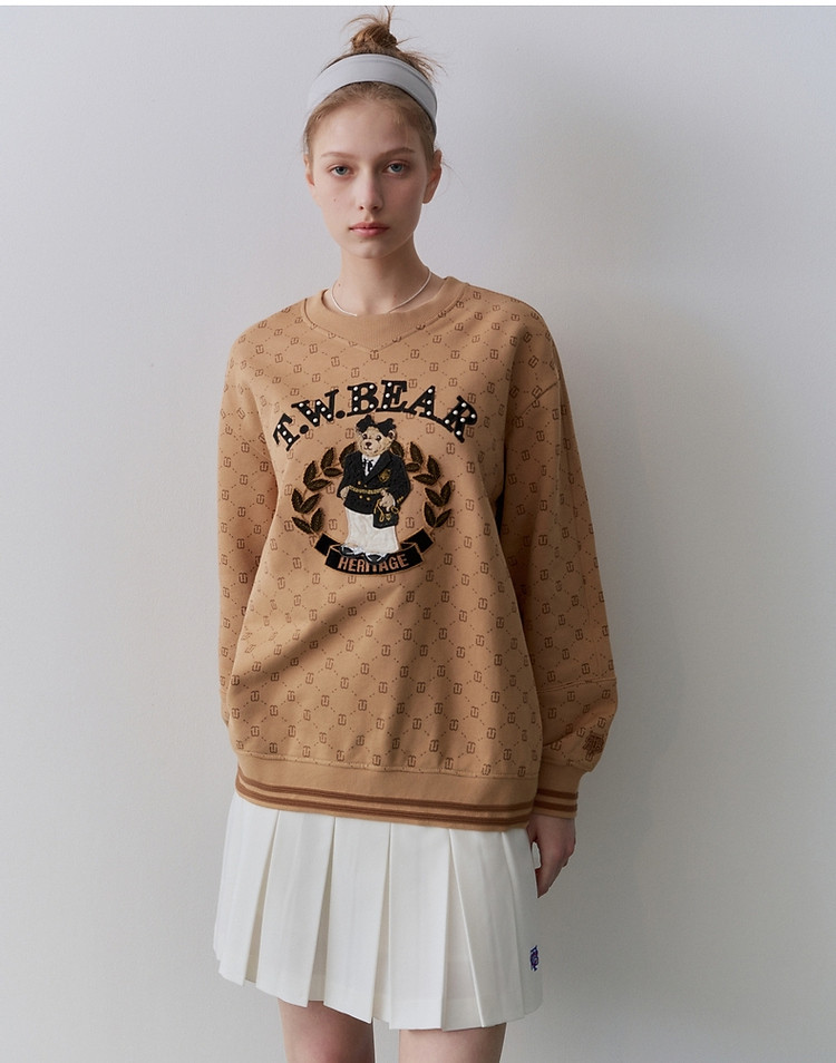 小熊女装春秋款学院风宽松满印大熊款圆领卫衣 436417