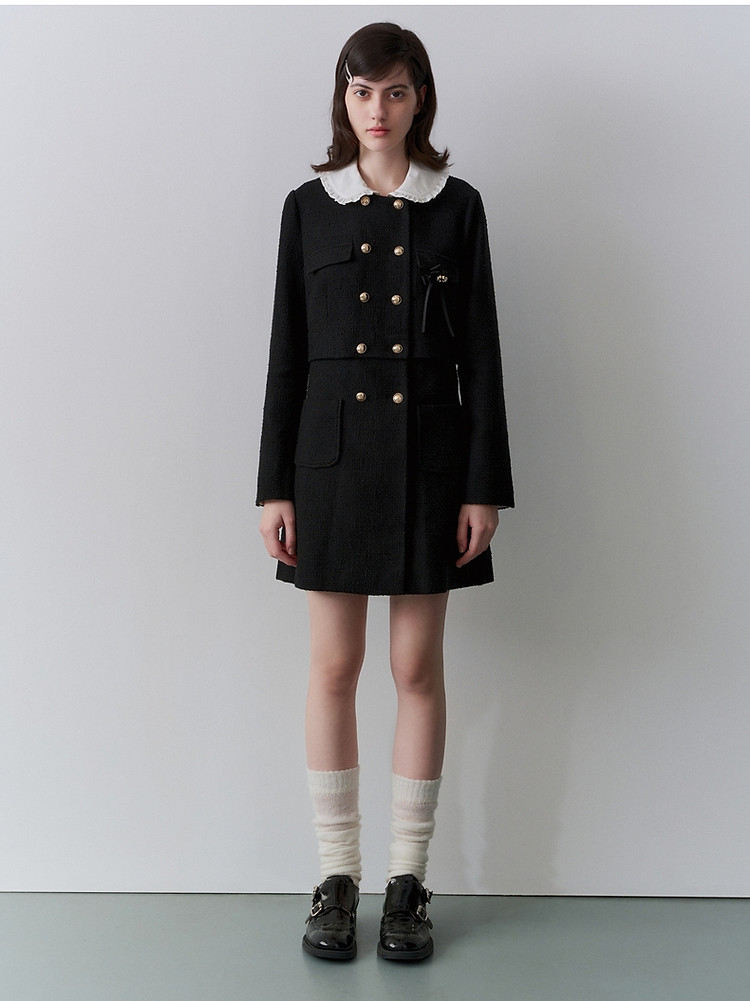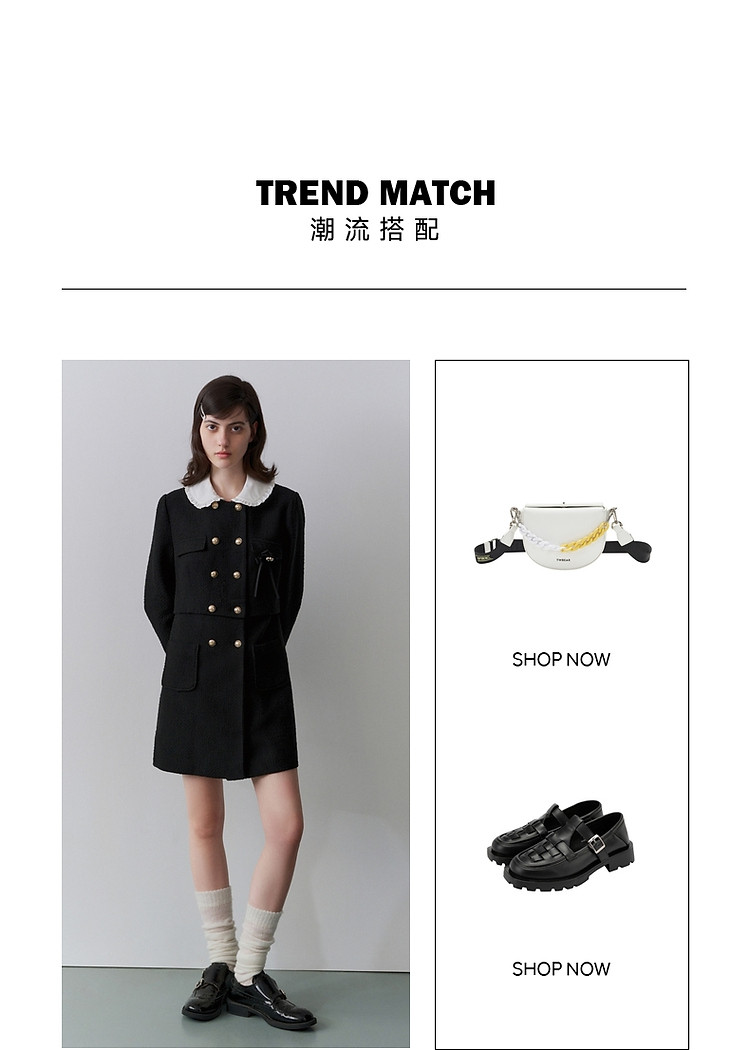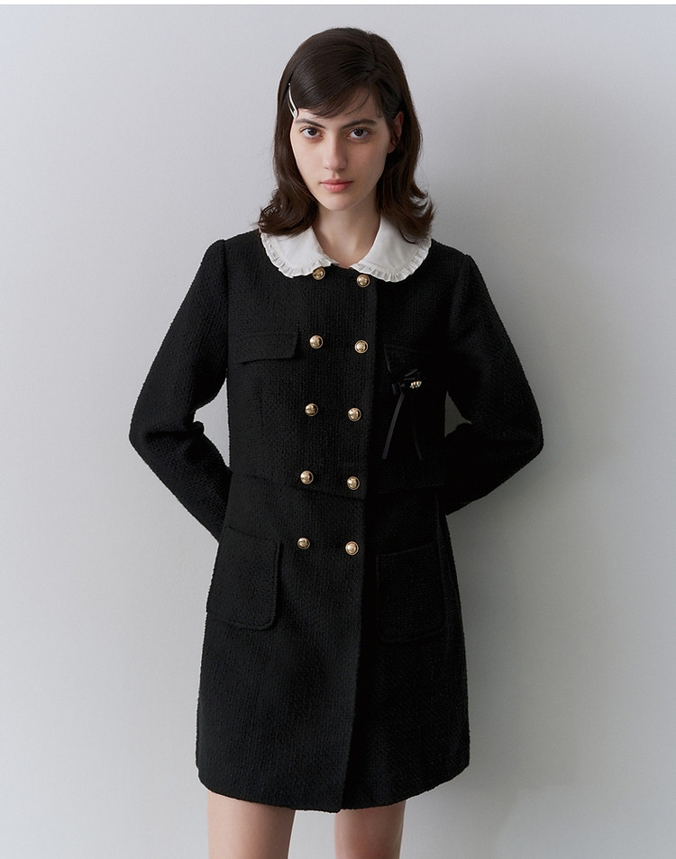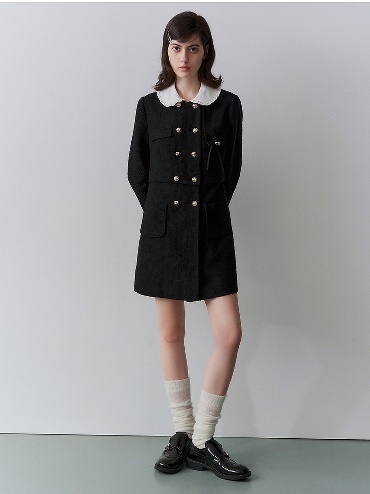 商品名称:小熊女装春秋款气质法式小香风连衣裙式长外套 401857