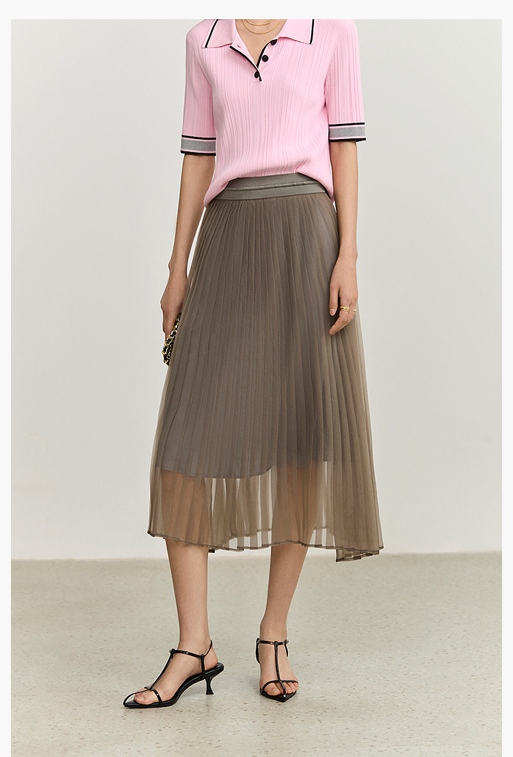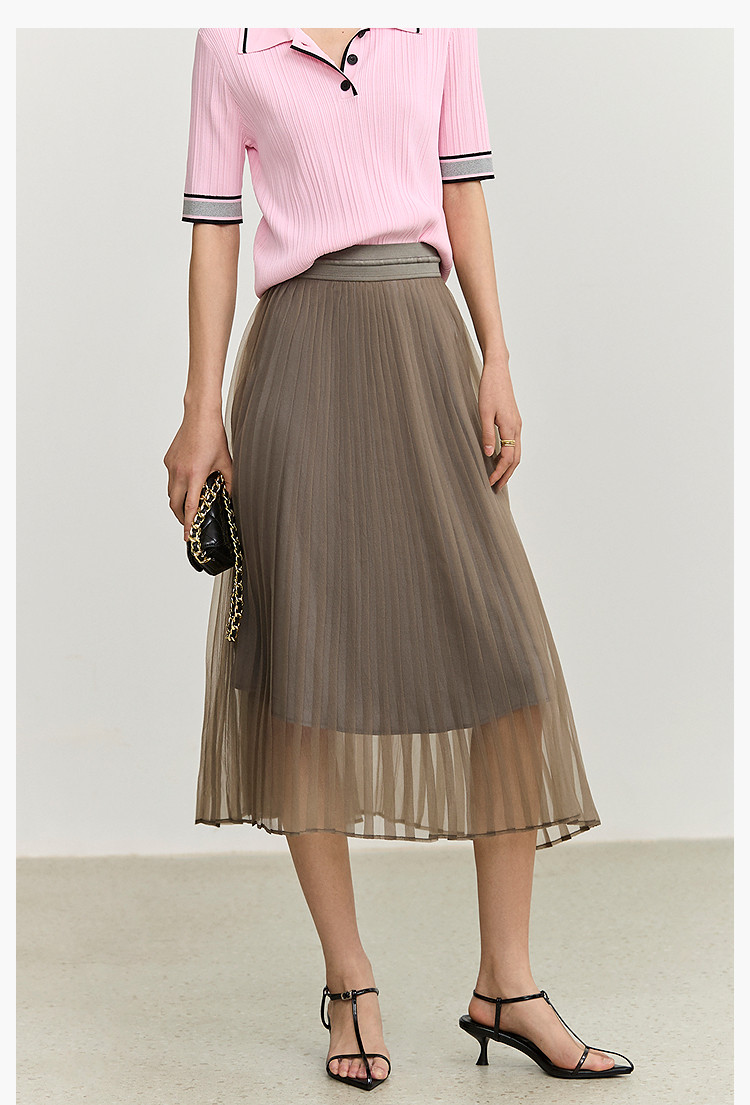 夏季气质通勤款都市百搭高腰显瘦网纱百褶半身裙女 201179