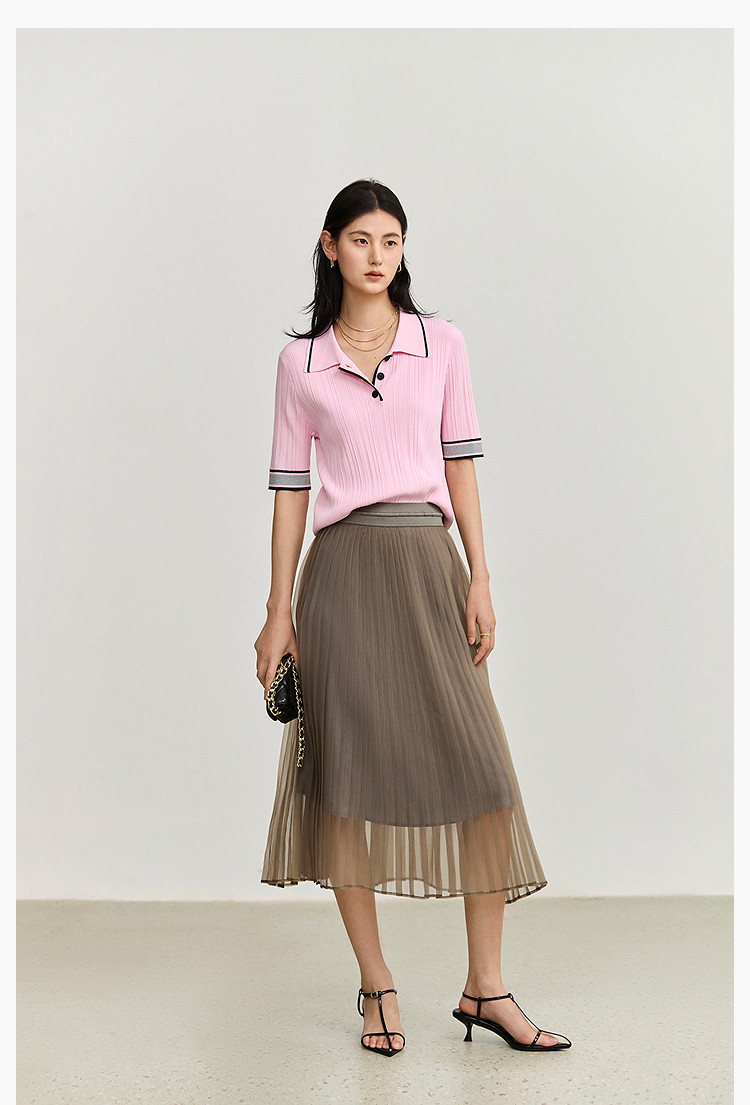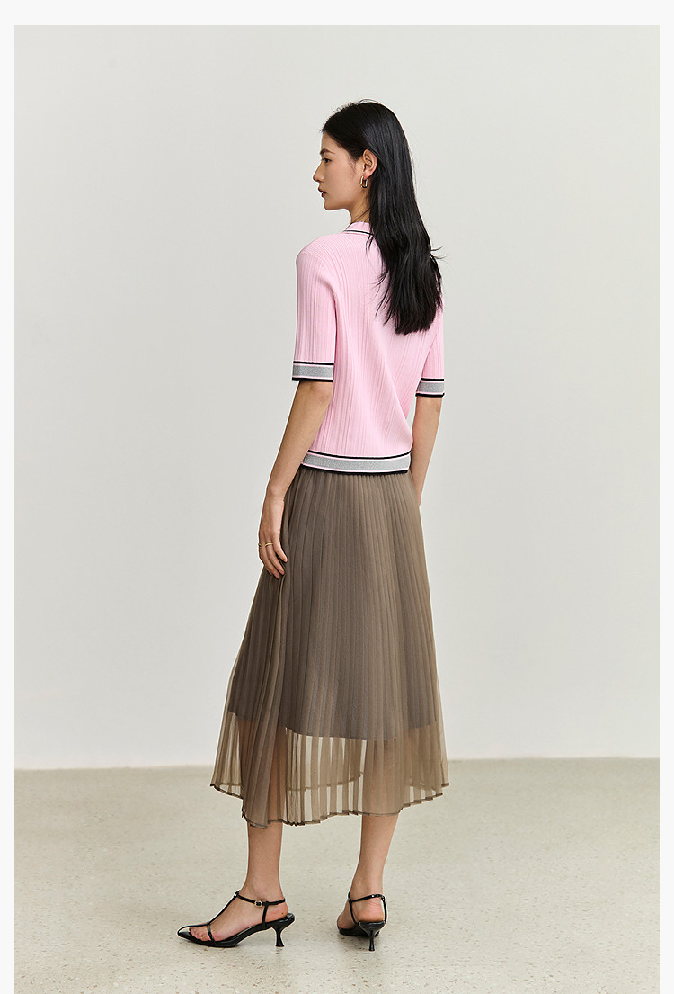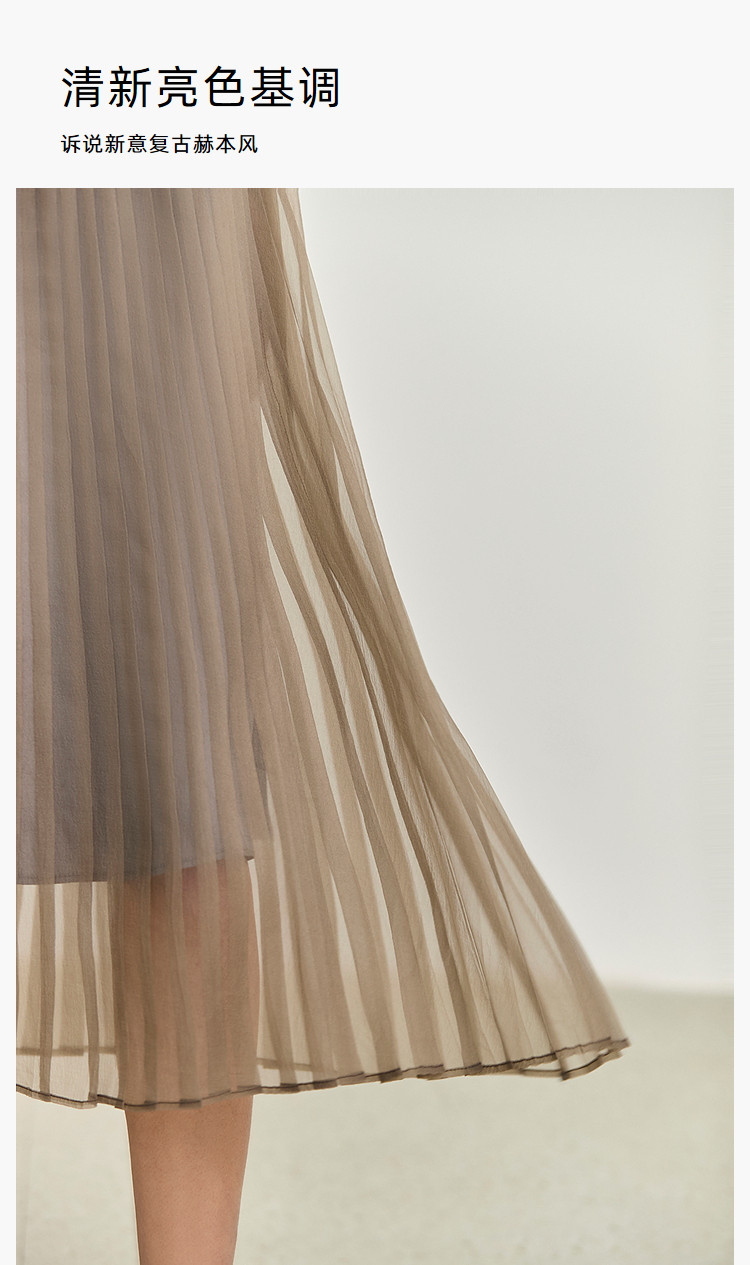 商品名称:夏季气质通勤款都市百搭高腰显瘦网纱百褶半身裙女 201179