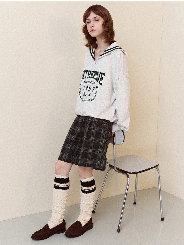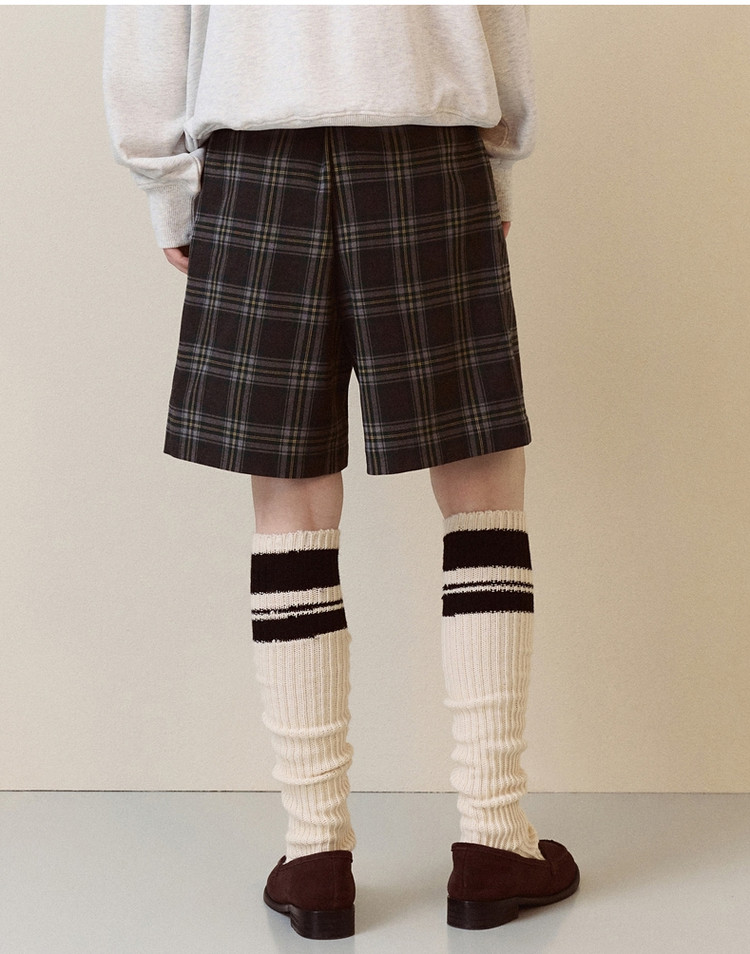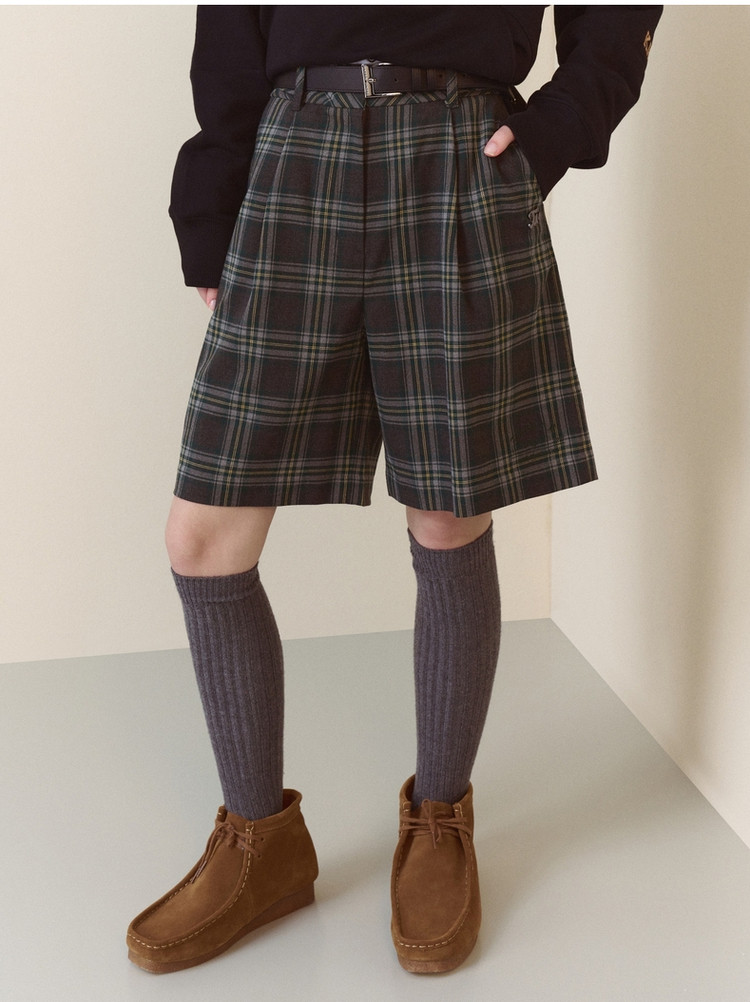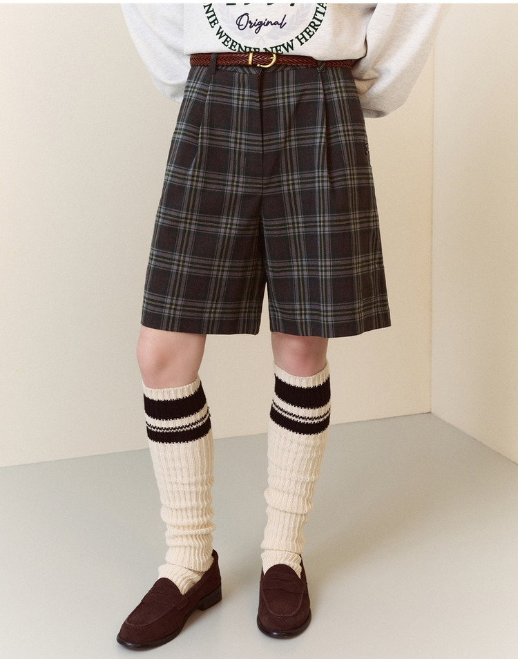 小熊春秋款优可丝格纹短裤休闲款复古宽松直筒小个子 083777