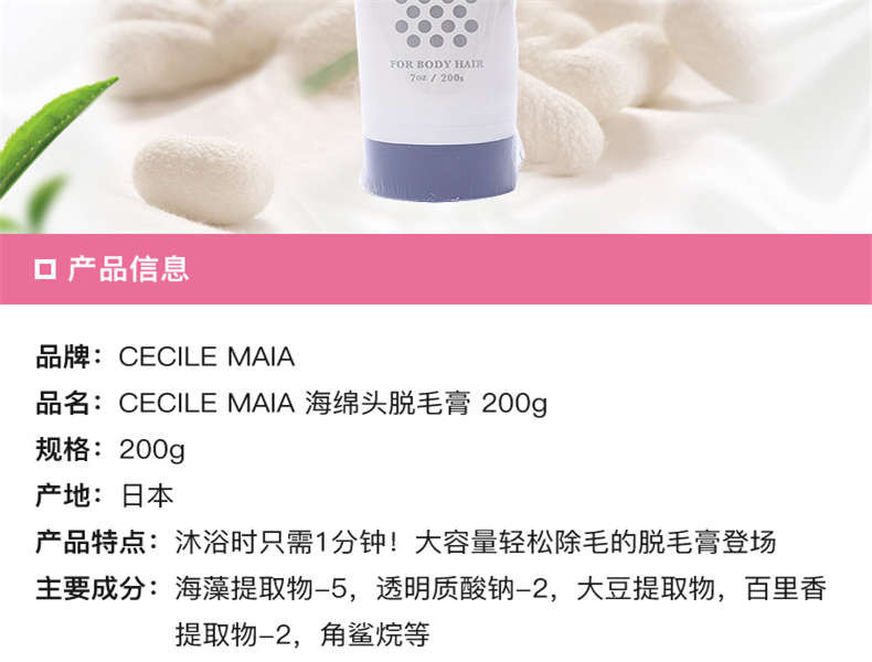 商品名称:CECILE MAIA 海绵头脱毛膏 200G