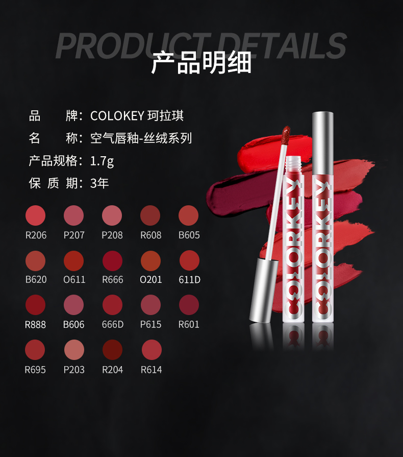 商品名称:Colorkey/珂拉琪 空气唇釉丝绒雾面哑光唇彩
