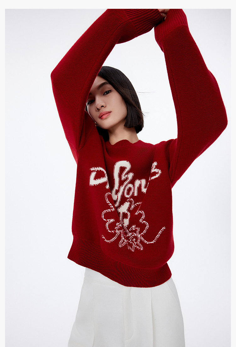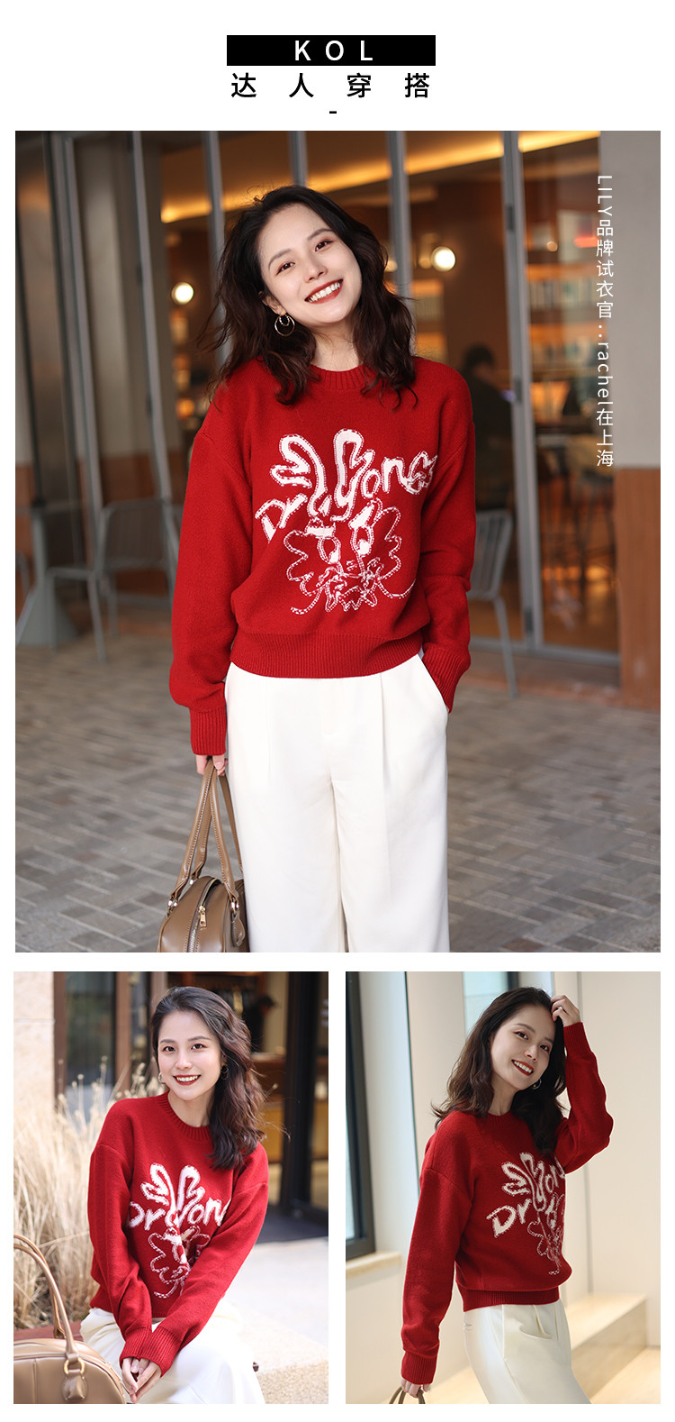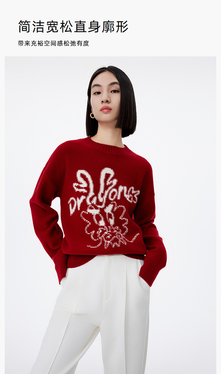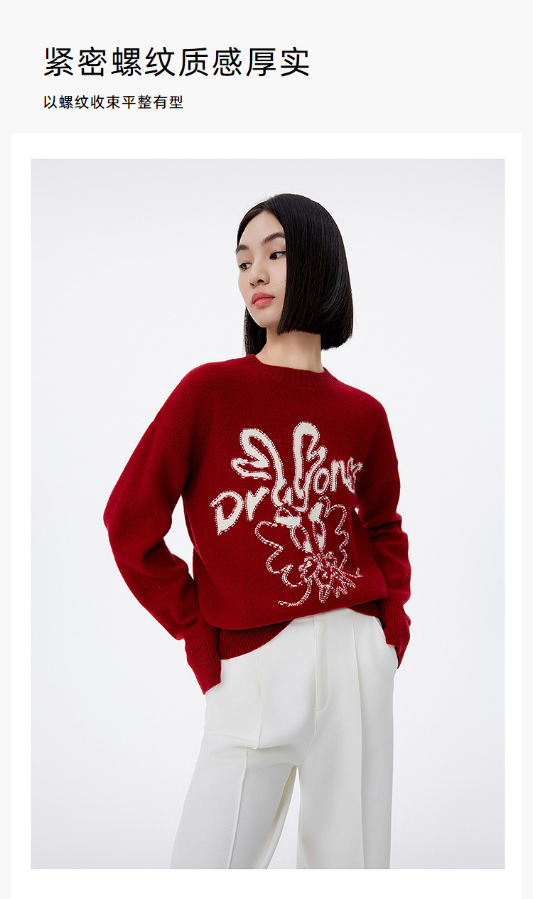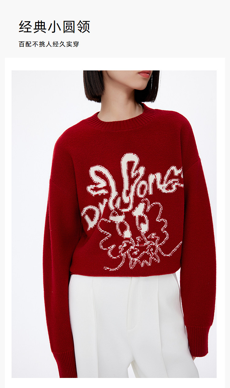 商品名称:【龙年衣】春季款季拜年红色毛衫全绵羊毛针织衫毛衣女上衣 769691